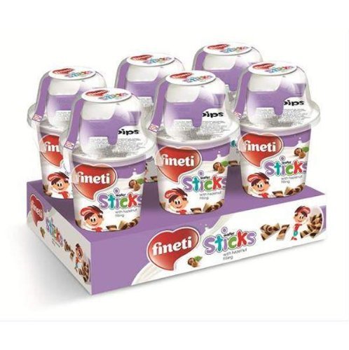 Cracker sticks to dip in hazelnut spread with cocoa. With small toy. Produced in E.U.
