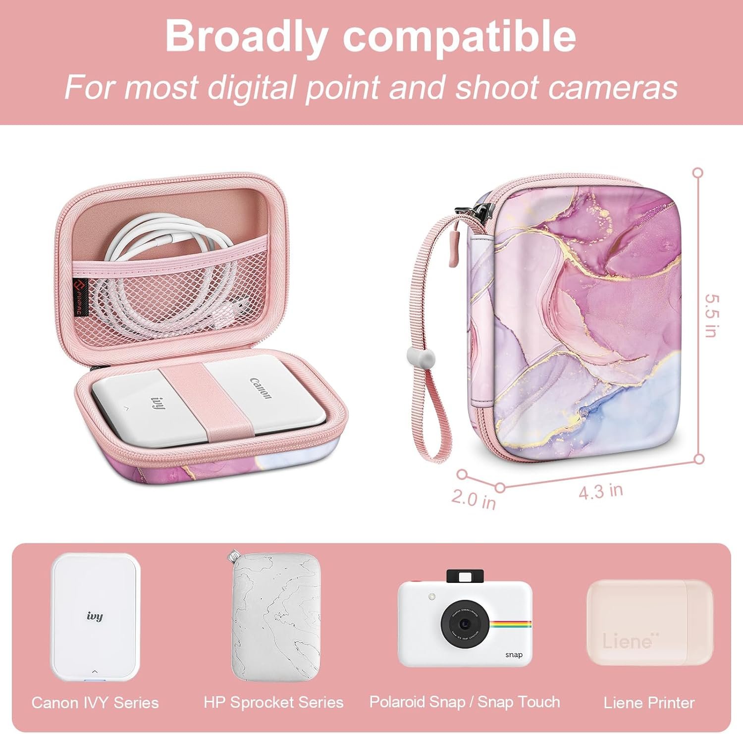 Designed for Canon IVY Mini / Ivy 2 Mini / Ivy CLIQ / Ivy CLIQ+ / CLIQ2 / Ivy CLIQ+2 Instant Camera Printer, HP Sprocket / Sprocket 2-in-1 /Sprocket 2nd Edition Printer, Polaroid ZIP / Snap / Snap Touch Instant Digital Camera. [Internal dimensions: 4.88*3.54*1.73 inches].