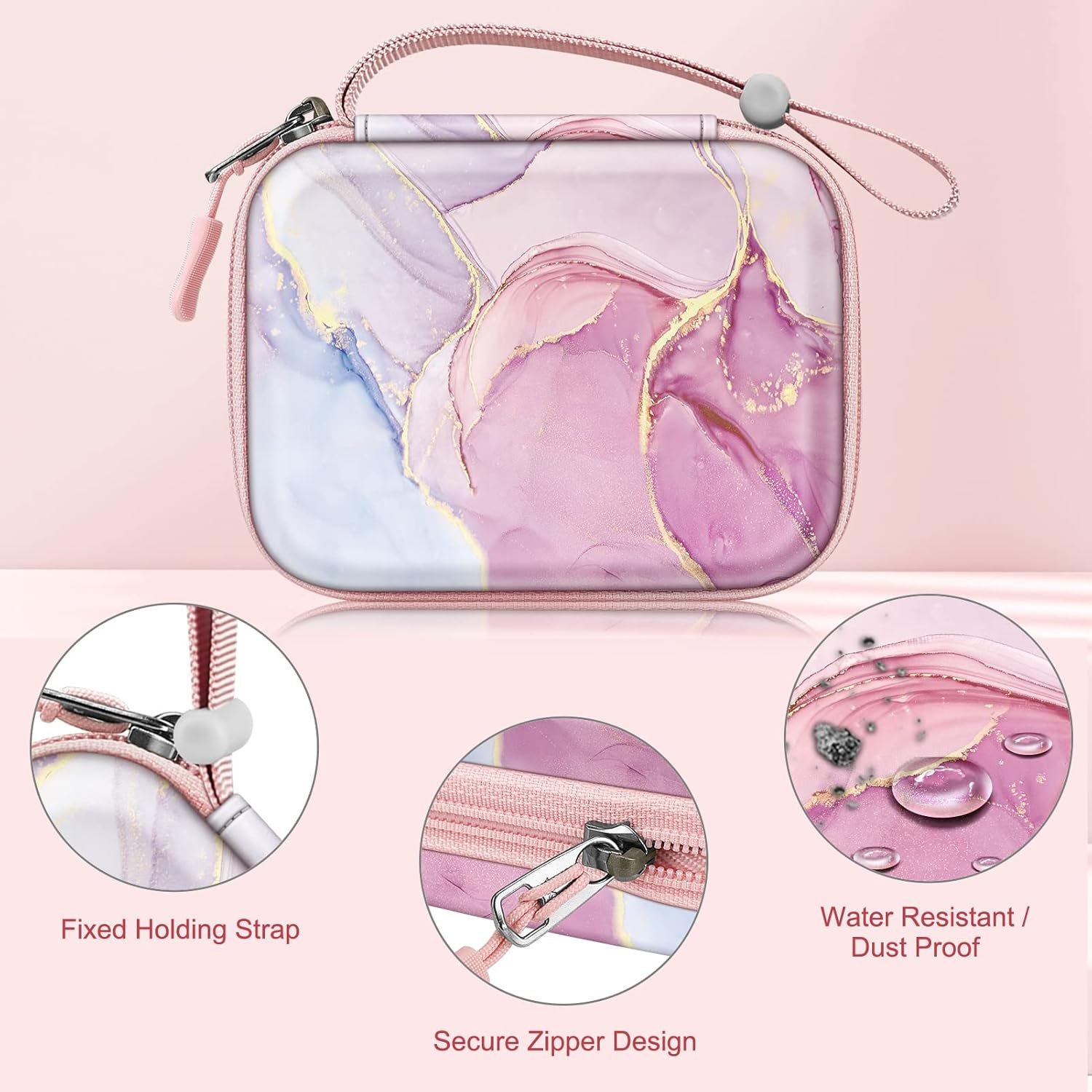 Built-in Elastic Strap to fasten the camera or printer, so it won’t collide with other things while in the case.
