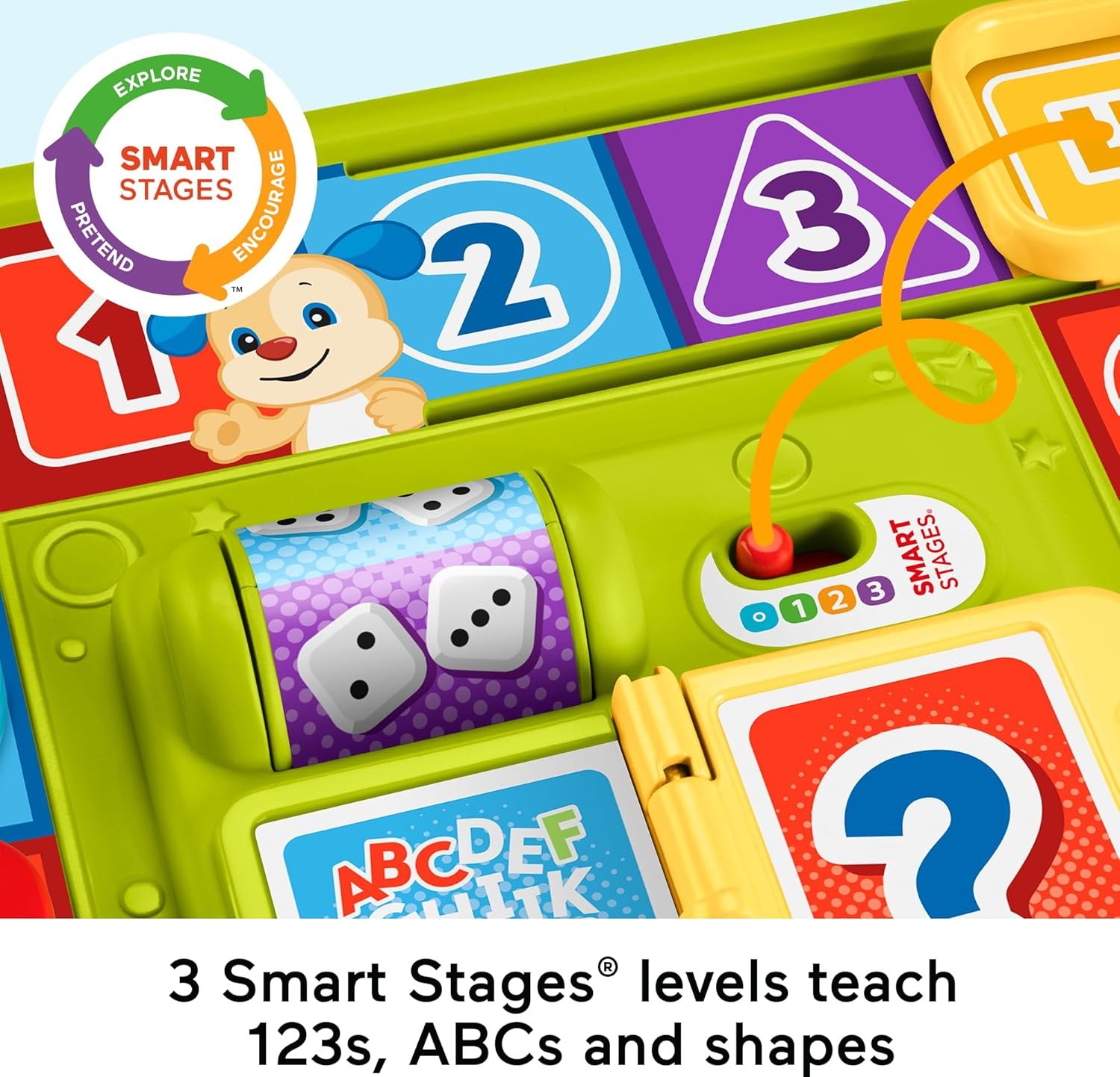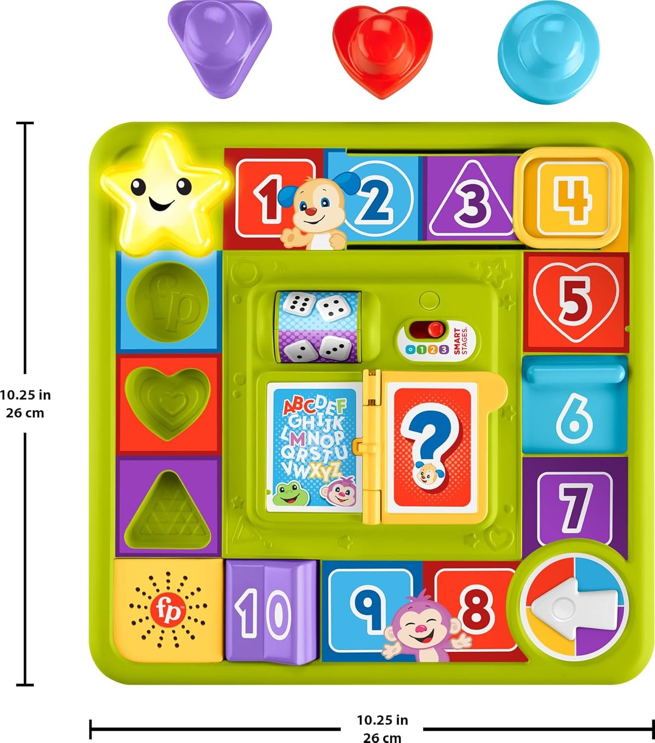 Interactive pretend board game toy with 3 play points that activate fun lights, music, and learning songs and phrases