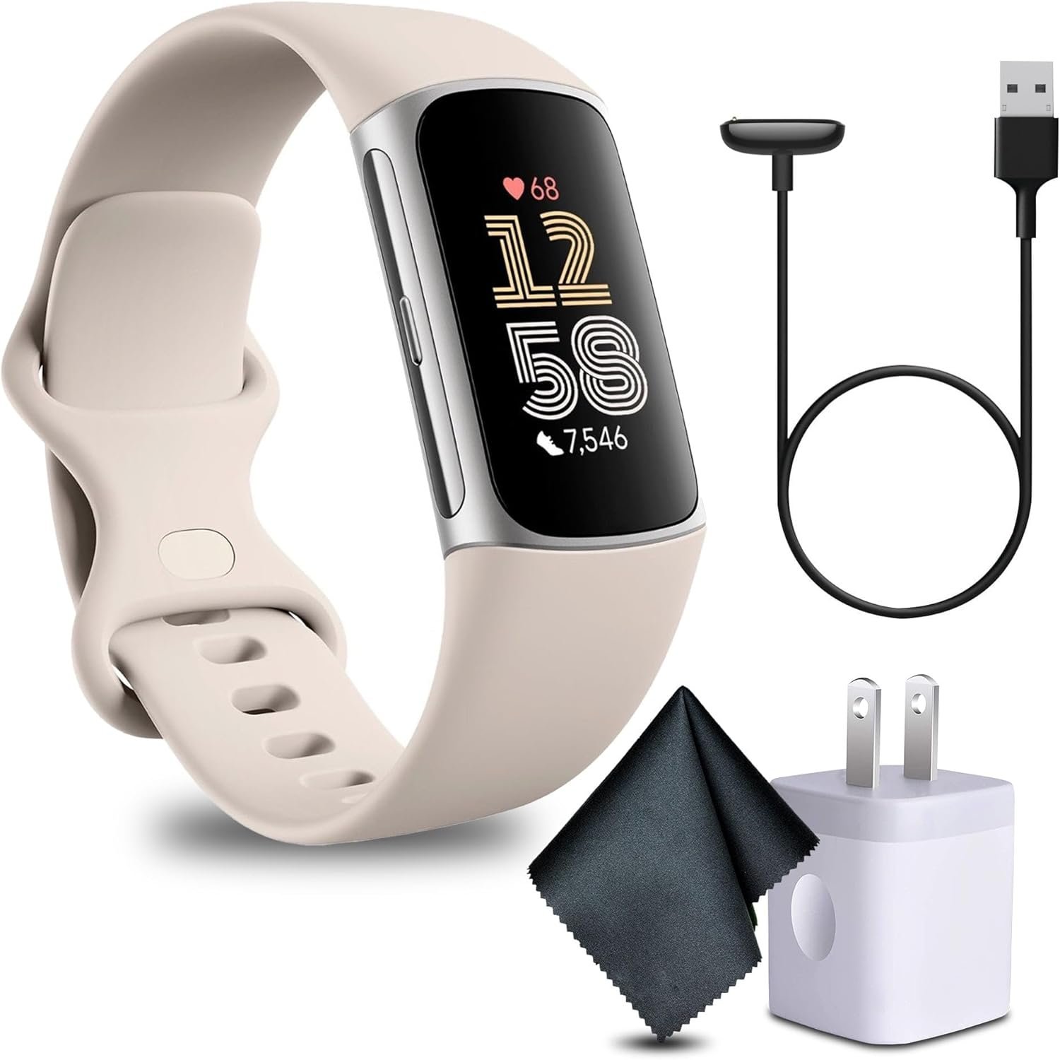 Bundle Includes: Fitbit – Charge 6 Advanced Fitness & Health Tracker Smartwatch- Porcelain + USB Charging Adapter + Diginerds Microfiber Cleaning Cloth
