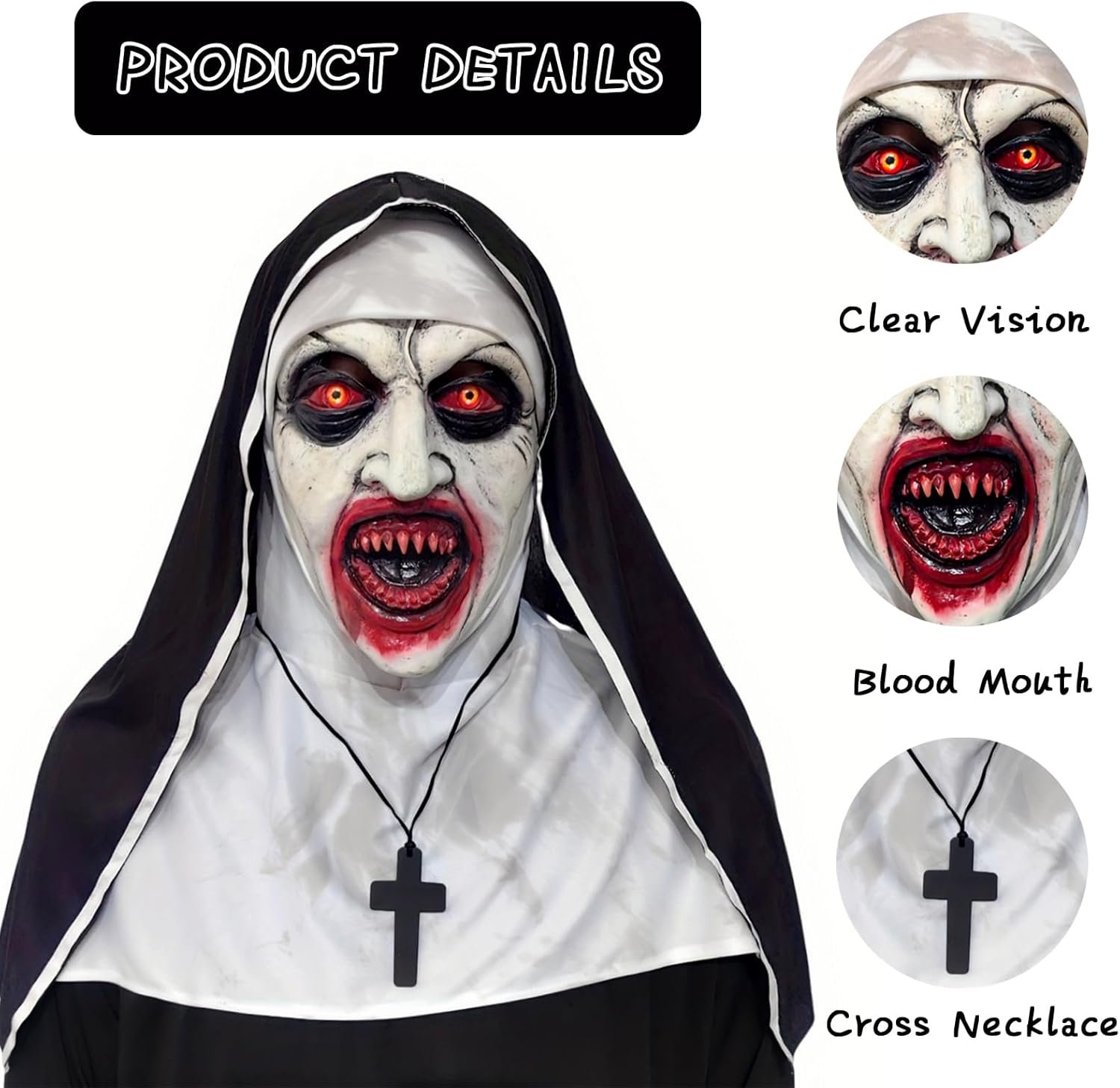 The evil nun mask features mouth and nose holes for easy breathing, ensuring comfort and clear visibility without sacrificing style.