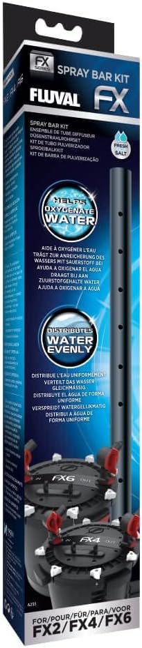 The adjustable and extendable FX Spray Bar Kit connects quickly and easily to Fluval FX series canister filters to ensure water is diffused evenly to all areas of the aquarium. This helps to promote a healthy gas exchange, carry nutrients to plants, and improves overall water quality, filtration performance and fish health. The unit can be positioned above the water line for added surface agitation and increased oxygenation, or below the water to create a gentle and consistent current.