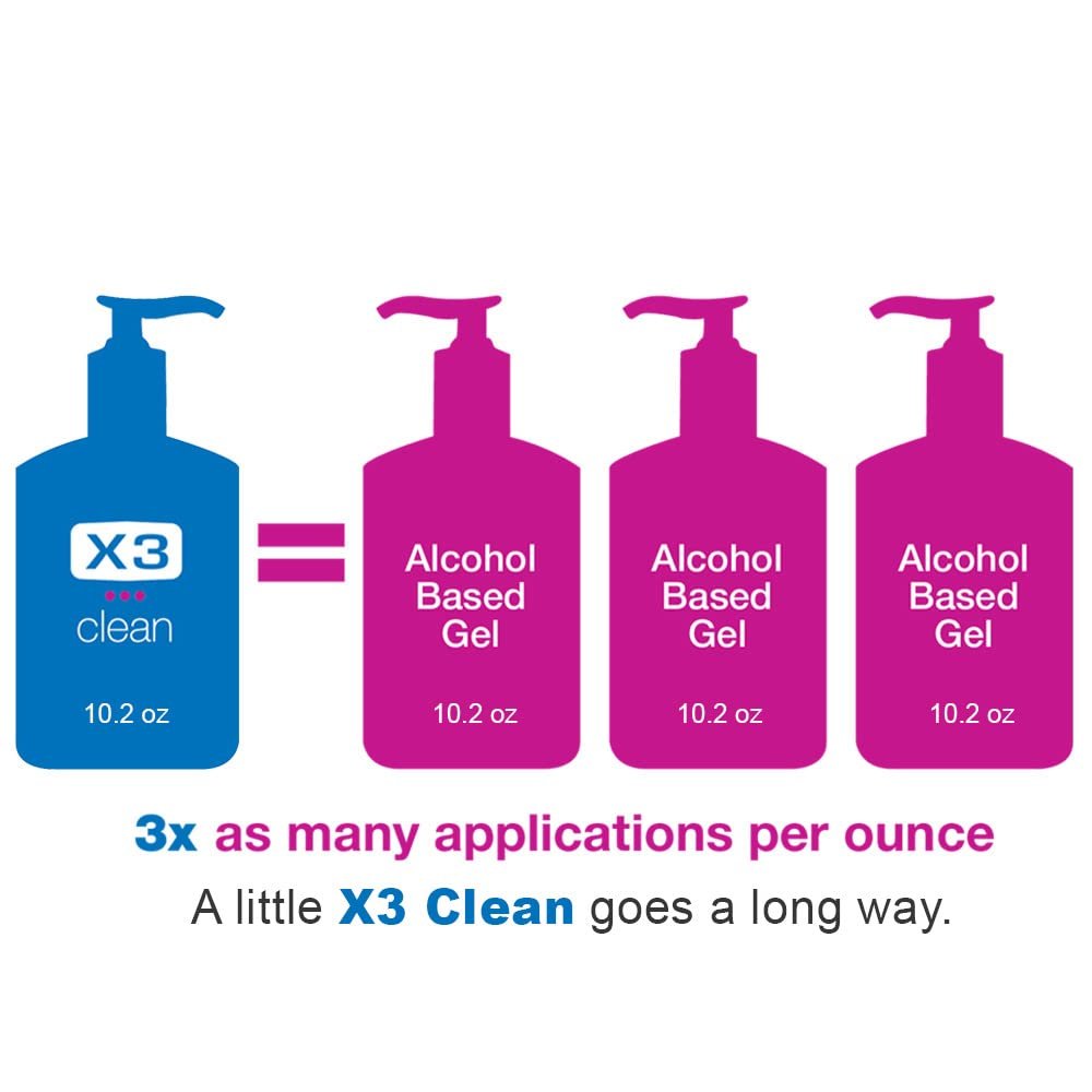 Formulated with 0.13% benzalkonium chloride, a trusted and proven antimicrobial agent used in the health care industry for more than 60 years in formulas for contact lens solutions, preservatives, sterilizing agents and leave-on, skin treatment products. X3 hand sanitizer provides a highly effective defense against a wide range of harmful bacteria. Its fast-acting formula quickly eliminates germs on your hands, promoting optimal hygiene and minimizing the risk of infection.