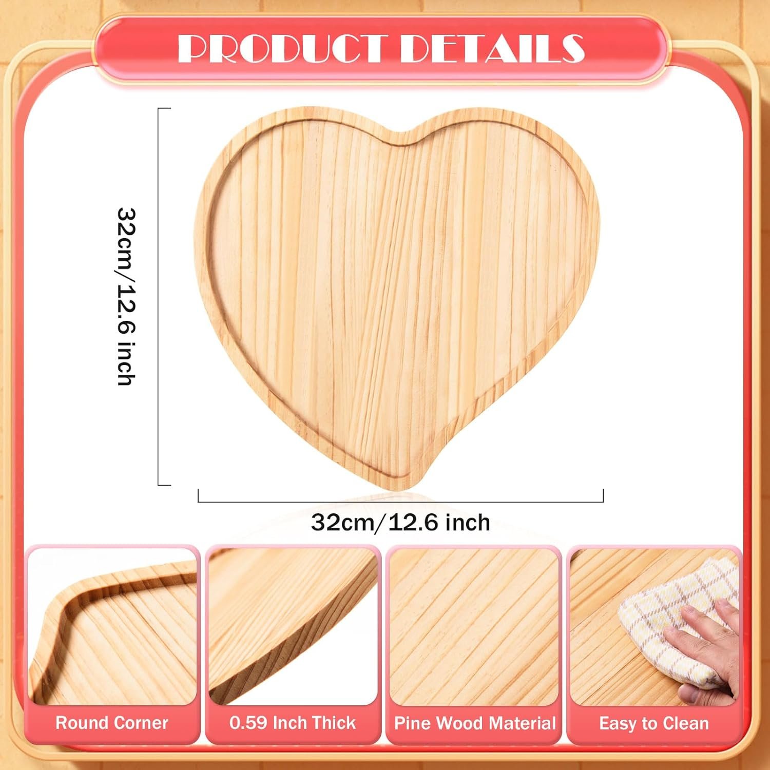 Heart Shape Serving Tray: the package contains 1 piece of heart-shaped wood serving tray, and the wood tray is about 32 x 32 cm/12.6 x 12.6 inches(LW) and 1.5 cm/0.59 inches in thickness, the proper size and cute design is great for everyday use and Valentine’s Day party use