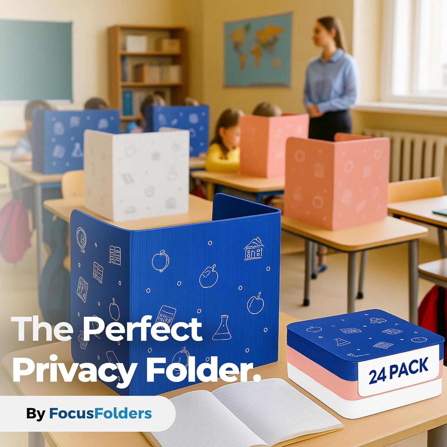 Be the first to review “FocusFolders 24 Pack- Privacy Folders for Students 24 Pack with Storage Box – Classroom Privacy Shields for Student Desks, 3 Unique Colors & 3X Layer Plastic Sheets, Student Privacy Folders for Desks”