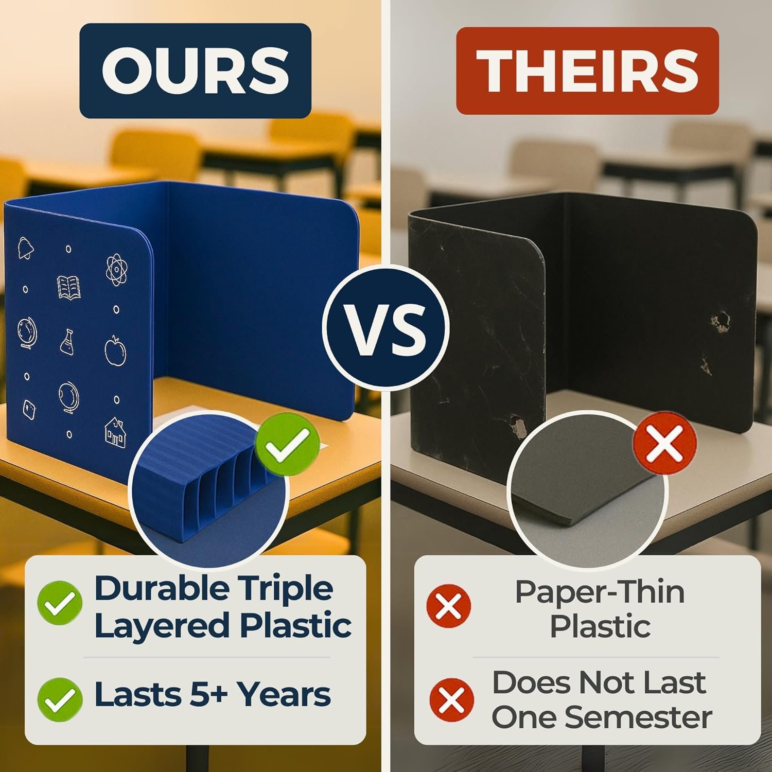 ✓ Long Use Lifetime -Made from premium 3-layer corrugated plastic, these Classroom Privacy Shields for Student Desks are built to handle the daily demands of busy classrooms. Designed to last 5+ years, these sturdy Privacy Folders are a reliable classroom investment, saving you money on replacements while ensuring consistent performance.
