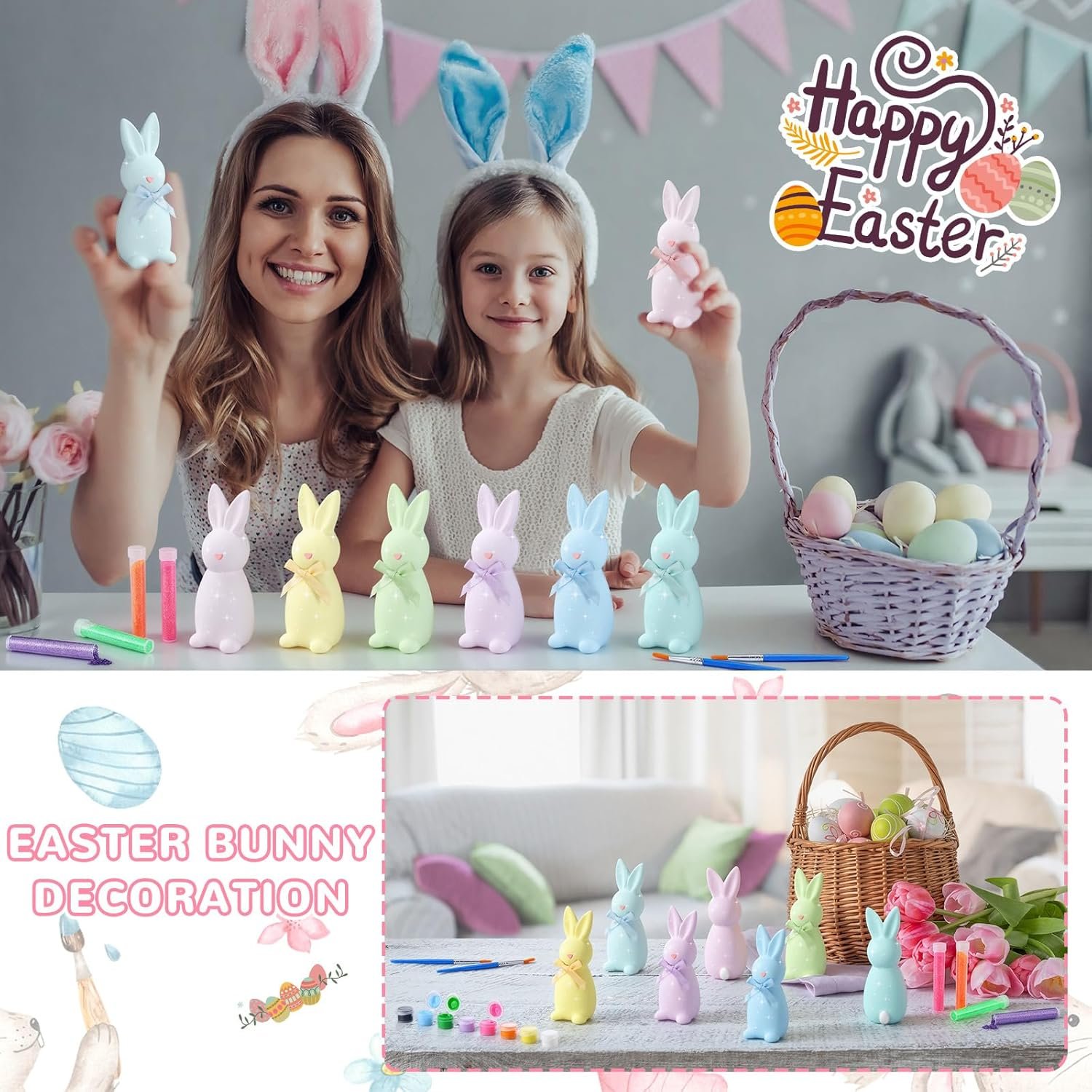 Easter Gift: the self painted bunny set looks cute and exquisite, making it a wonderful Easter gift, Easter egg fillers, Easter hunt, Easter basket stuffers, birthday present, DIY activity, or party favor for your loved ones; It’s ideal for your gifts