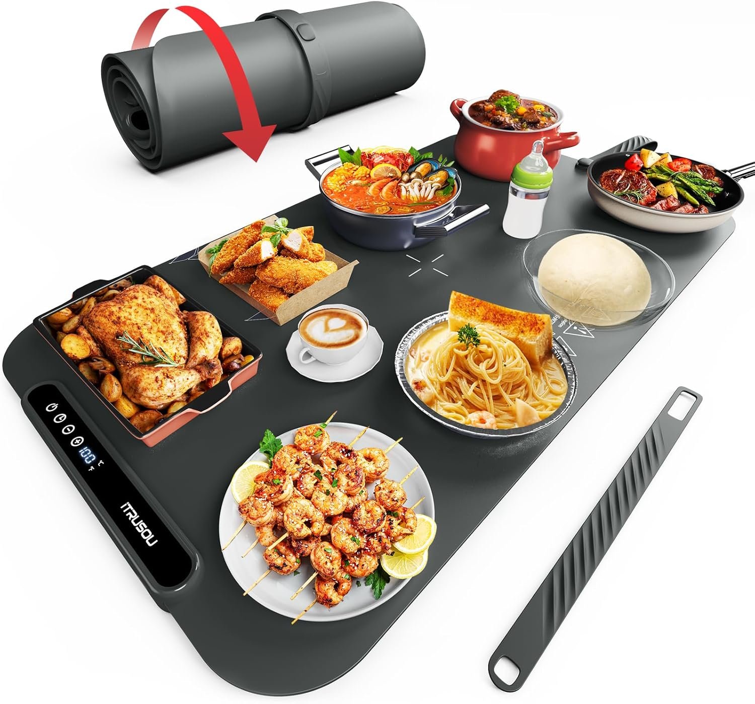 【Ultimate Temperature Flexibility】Keep your food at the perfect temperature with our electric warming mat for food, featuring 7 adjustable settings from 104°F-212°F. Whether it’s a cozy family dinner or a festive gathering, our warming tray offers precise control, you’ll always serve your guests warm dishes just right
