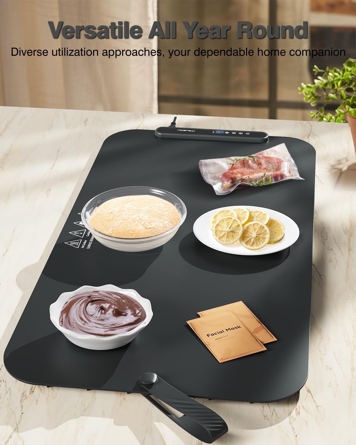 【Intuitive Temperature Display】Quickly switch between Celsius and Fahrenheit to match your cooking style. This silicone warming mat easy-to-use feature ensures that everyone can effortlessly navigate the settings, providing no more confusion during meal prep