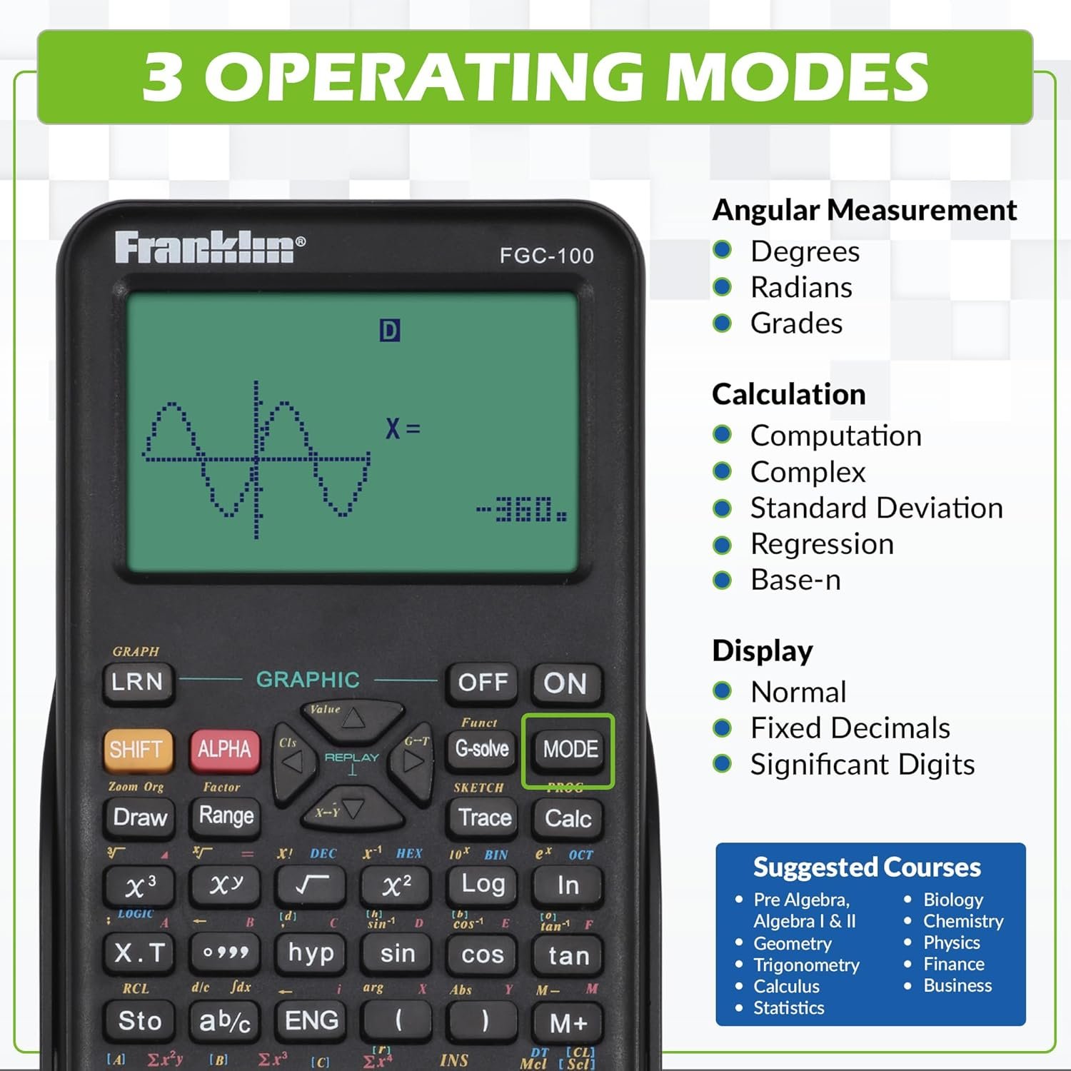 Graphing Capabilities: This graphic calculator features built-in graphing functions, allowing users to visualize data and equations. Ideal for use in classrooms as one of graphing office calculators.