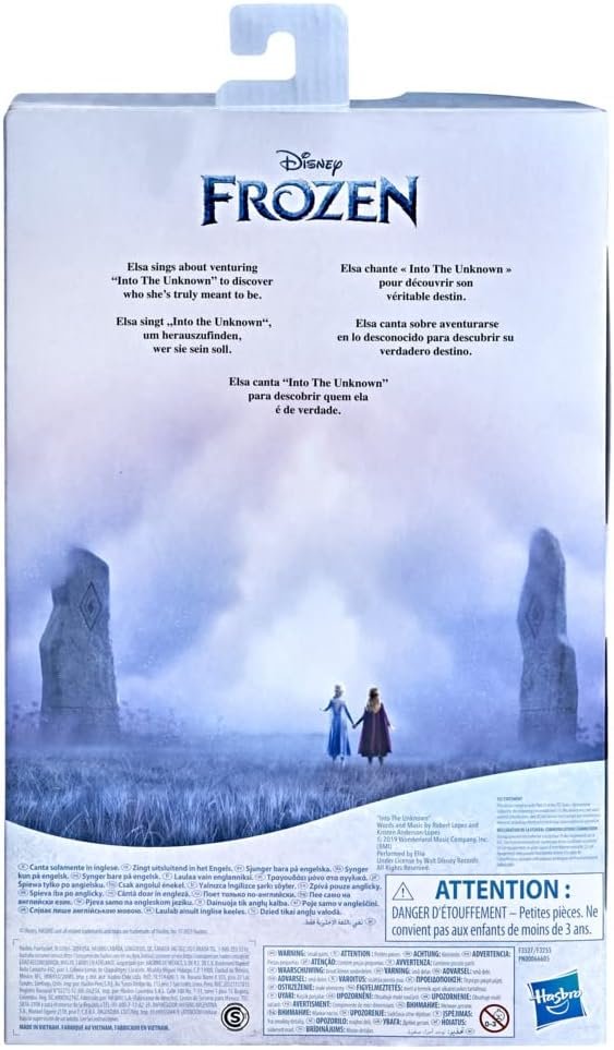 At Disney’s Frozen 2, Elsa leaves her home in Arendelle and delves into the Enchanted Forest, embarking on an adventure to discover her true self. Sing alongside the doll Elsa Reina musical a fragment of Unknown’s theme Into from Disney’s Frozen 2. Its molded bodice features twinkling diamond-shaped lights, which dance to the rhythm of music. The doll comes with batteries for you to start playing after taking the doll out of the box. Move the switch on the back of the wrist from Try Me to Play, and then lift your arm to start the song. You’ll love her movie-inspired white and blue skirt, and her matching shoes. Look for other Frozen toys, such as Queen Anna musical doll, to expand your Disney doll collection and continue musical adventures. (sold separately. Subject to availability). Copyright Disney Hasbro and all related terms are trademarks of Hasbro.