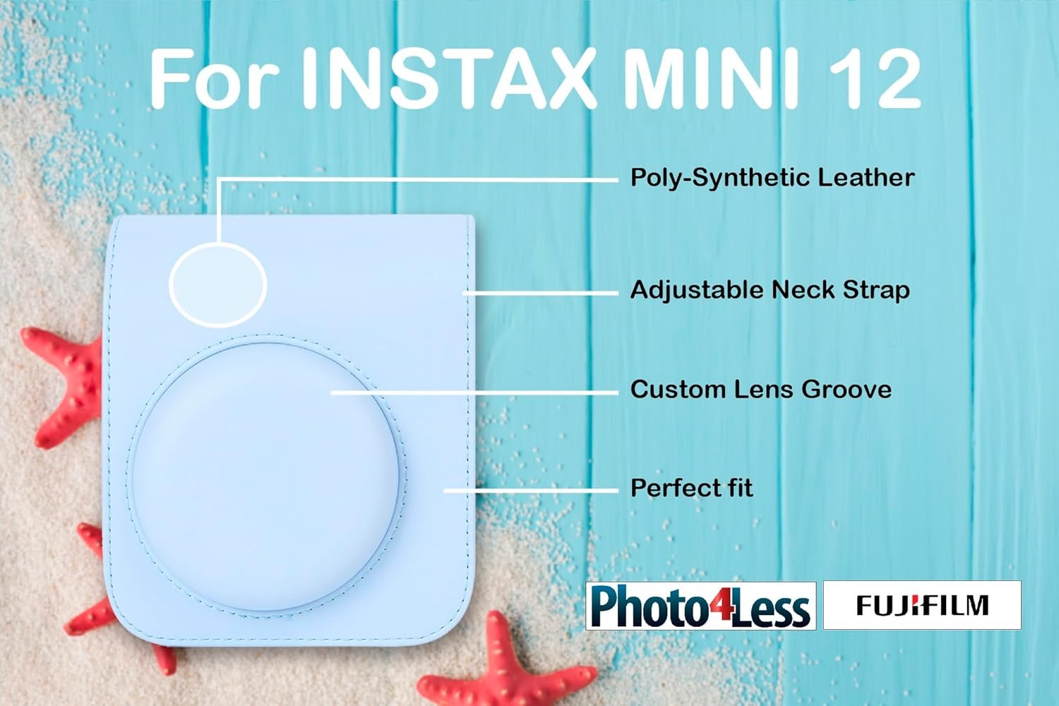 Kit Includes – Kit Includes – Fuji Mini 12 Instant Camera Blossom Pink, Instax Mini film twin pack – 20 Sheets, Protective case – Starter Gift Bundle.