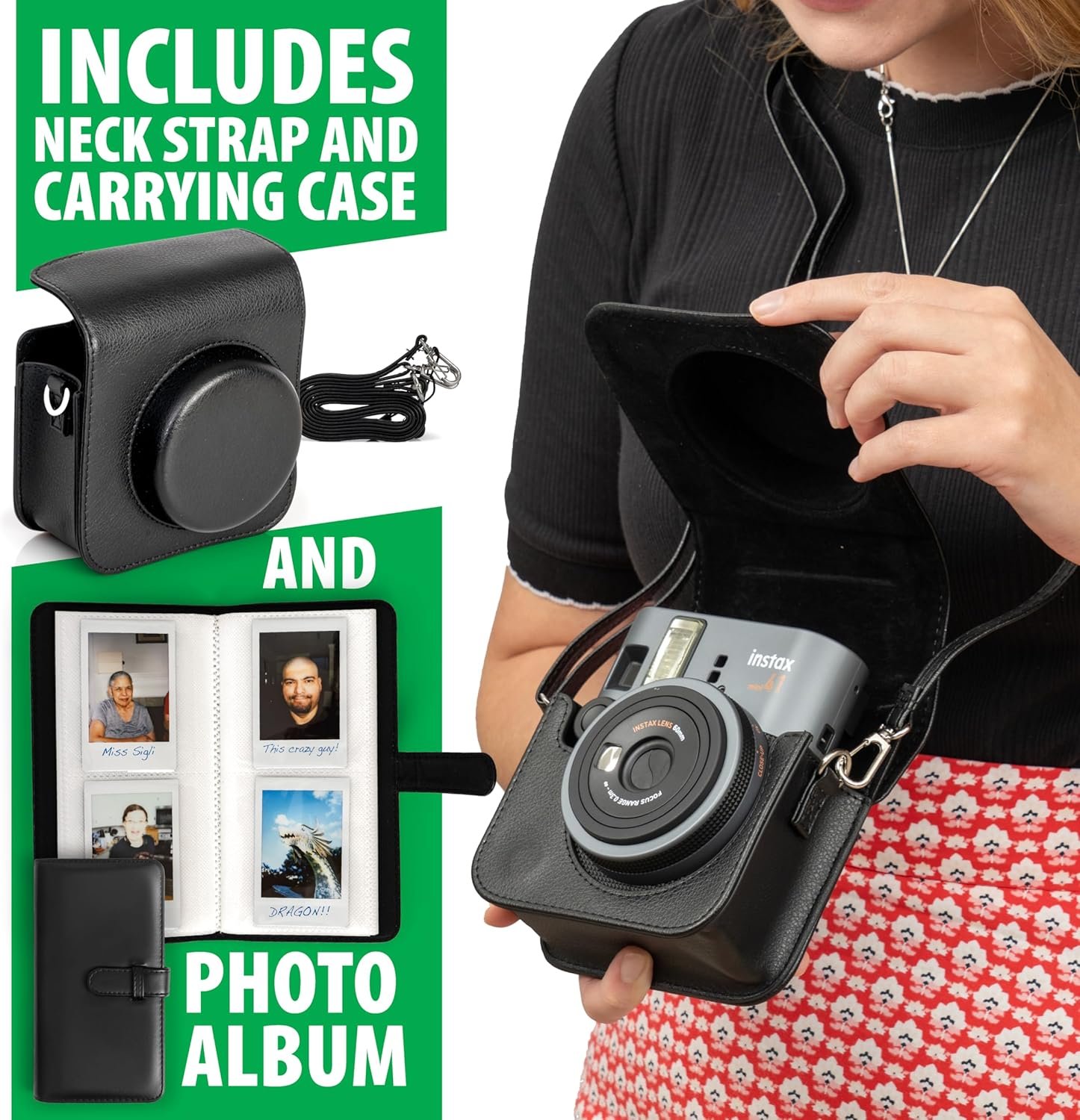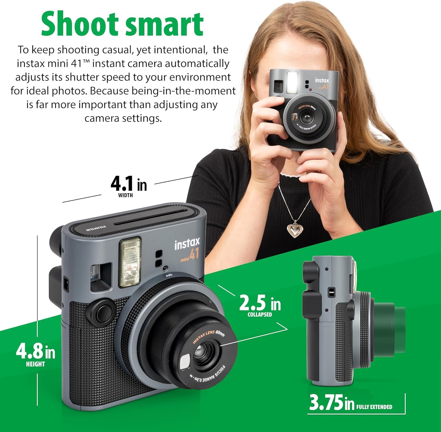 Includes FujiFilm Instax Mini 41 Camera, The Fujifilm Instax Mini 41 Camera Black features a Optical Image Viewfinder, Auto Exposure and a Built-In Flash. Instantly produces image prints fun and simple. Fujifilm Instax Mini 40 Camera BUNDLE is Fun, Stylish and really Cool