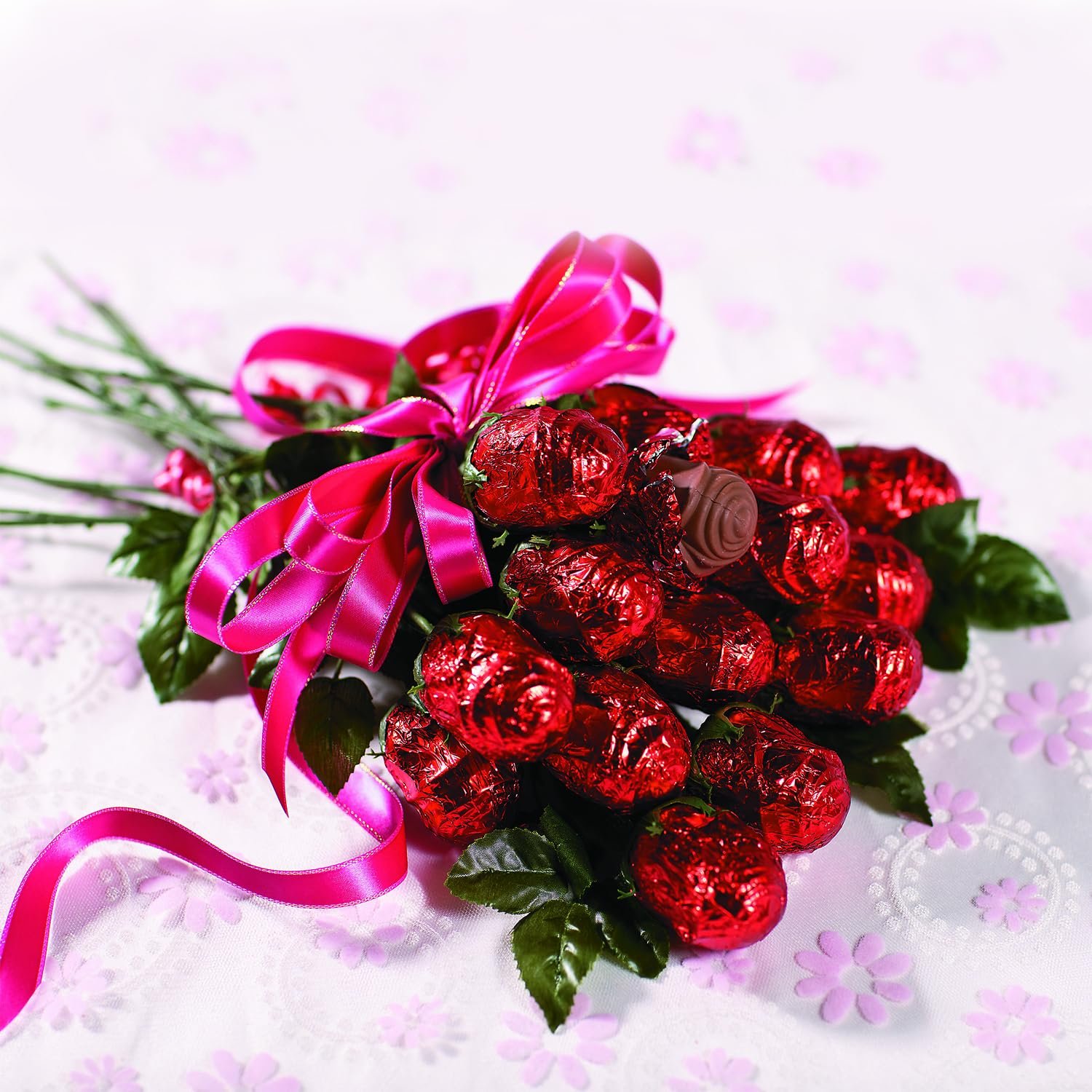 Premium chocolate bouquet featuring 12 individually wrapped milk chocolate roses in elegant red foil – Perfect candy bouquet gifts for expressing love and appreciation on special occasions like Mother’s Day
