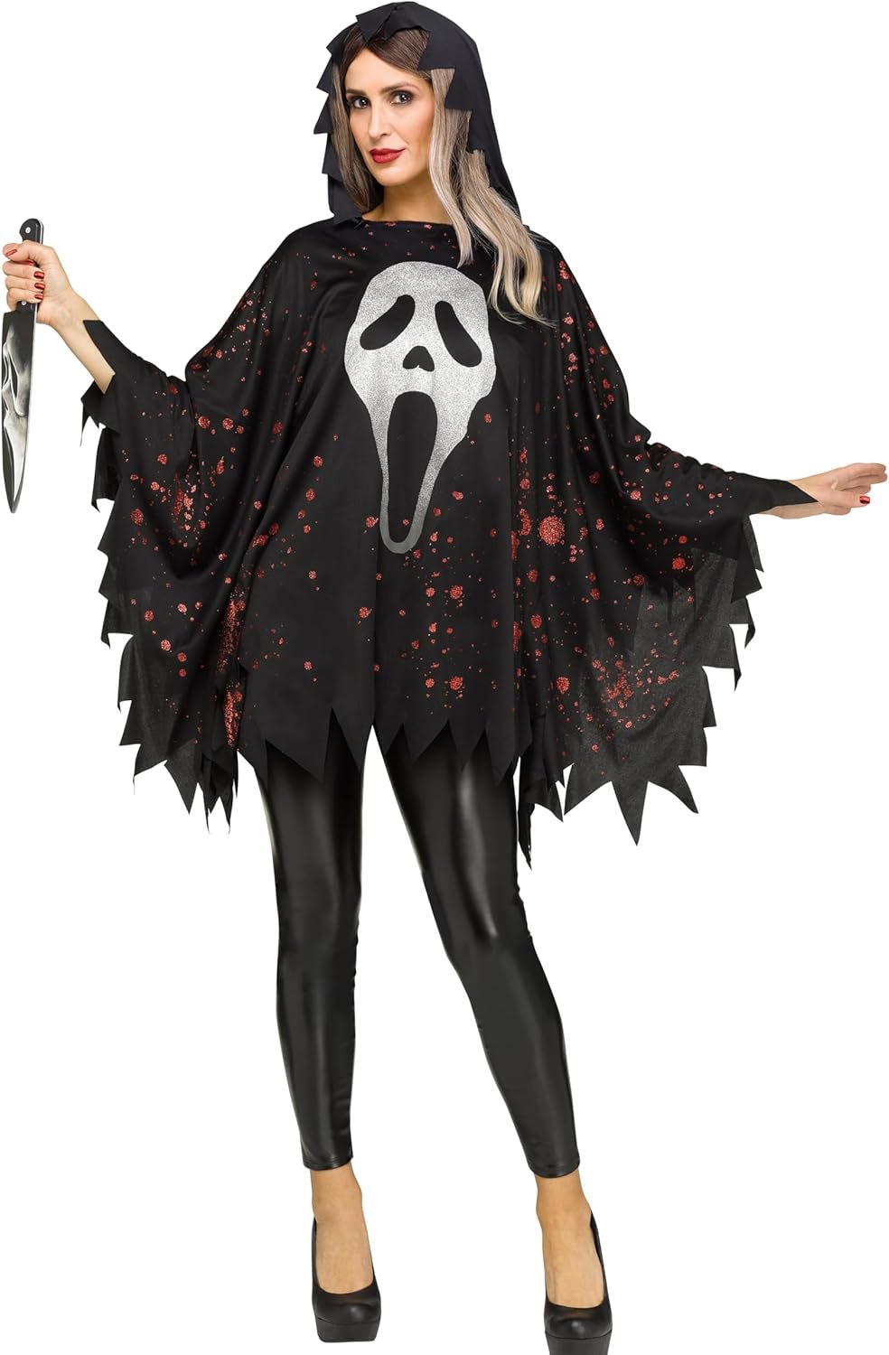 You’ll be looking like a Ghost Face groupie when wearing this poncho! This poncho is great for looking just like Ghost Face or just for something spooky to wear out on the town! This poncho features a Ghost Face mask design. This is great on its own, but could be even better with the other costumes and accessories available in our store!