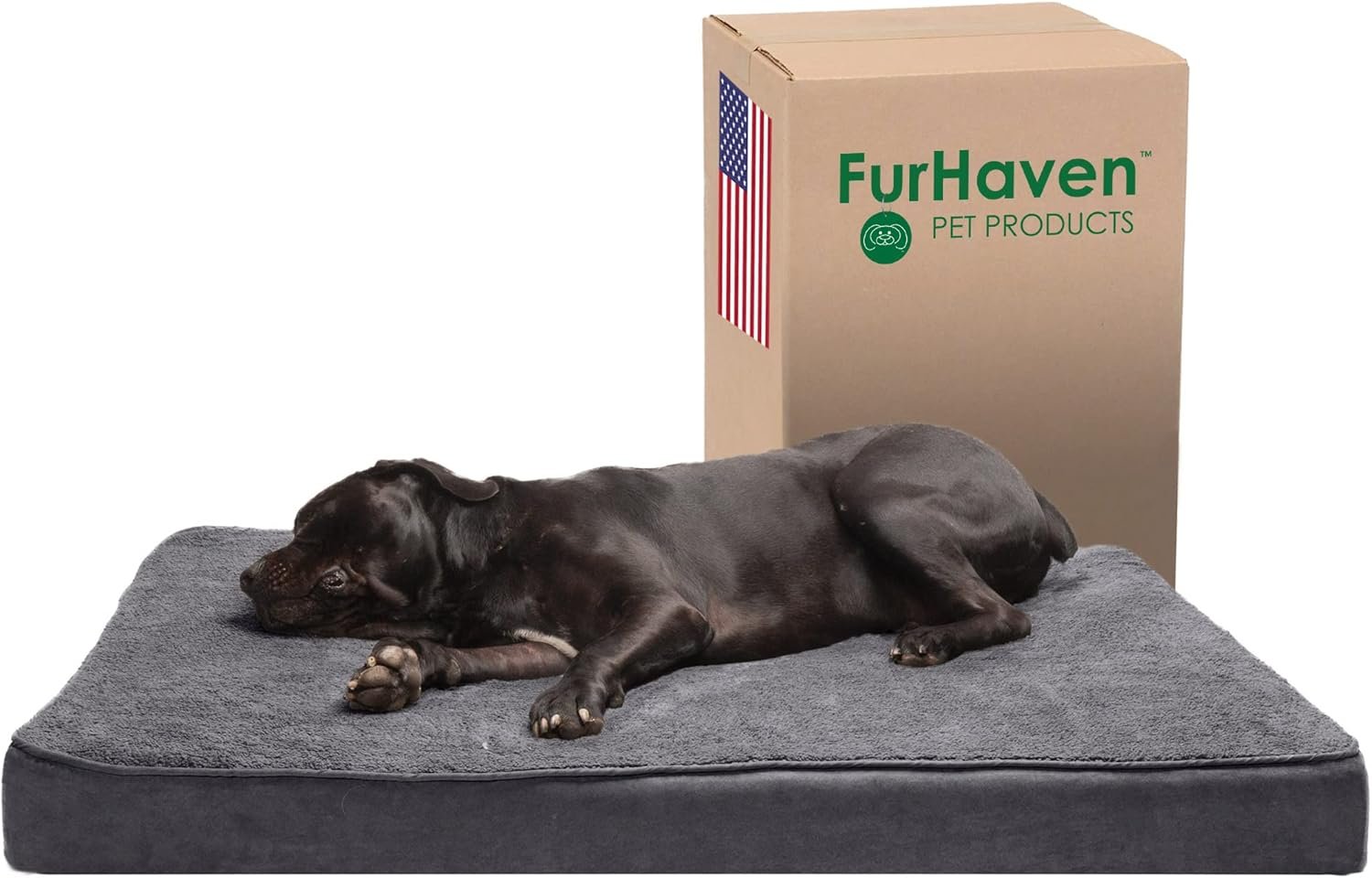 Give your pet the restful sleep they deserve with a Furhaven Deluxe Orthopedic Mat Snuggle Terry & Suede Traditional Foam Mattress Pet Dog Bed. Snuggly-soft terry fleece sleep surface and lustrous dyed-to-match suedine gusset. Deep convoluted (egg crate) foam provides your pet with extra support and cushioning for maximum comfort. Your pet will benefit from the convoluted orthopedic foam which is designed to evenly distribute weight and alleviate painful pressure on muscles and joints. Orthopedic convoluted foam has the added benefit of keeping your pet warmer in cool winter months and cooler in hot summer months. Better rest for your pet can lead to improved health. This bed also features an easy step-on “mat” design for older and disabled pets. Both cover and core are washable.