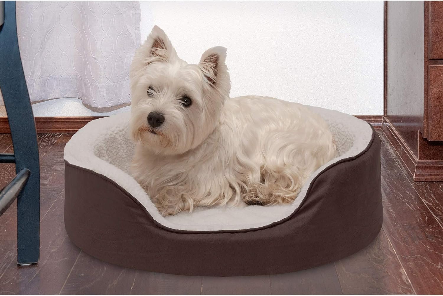 Snuggly-soft and orthopedic too! Your pet will love snuggling up in a Furhaven Sherpa & Suede Orthopedic Oval Dog Bed. By giving your pet their own napping spot, you will protect furniture and flooring from dander, dirt and fur. This lounger-style nest pet bed features foam rail walls to support back and hips, plus an egg-crate foam base for the ultimate cozy experience. Featuring a plush faux lambs wool (sherpa) sleep surface that is soft and snuggly; a water-resistant polycanvas base panel; and a front cut-out makes stepping into this bed easy for smaller, older or disabled pets. Zippered, removable cover for deep cleaning (machine or hand washable); foam rails and base can be removed for gentle hand washing to keep your pet’s bed smelling clean and fresh. This pet bed is ideal for small dogs (or cats!) who like to snuggle and curl up in comfort.