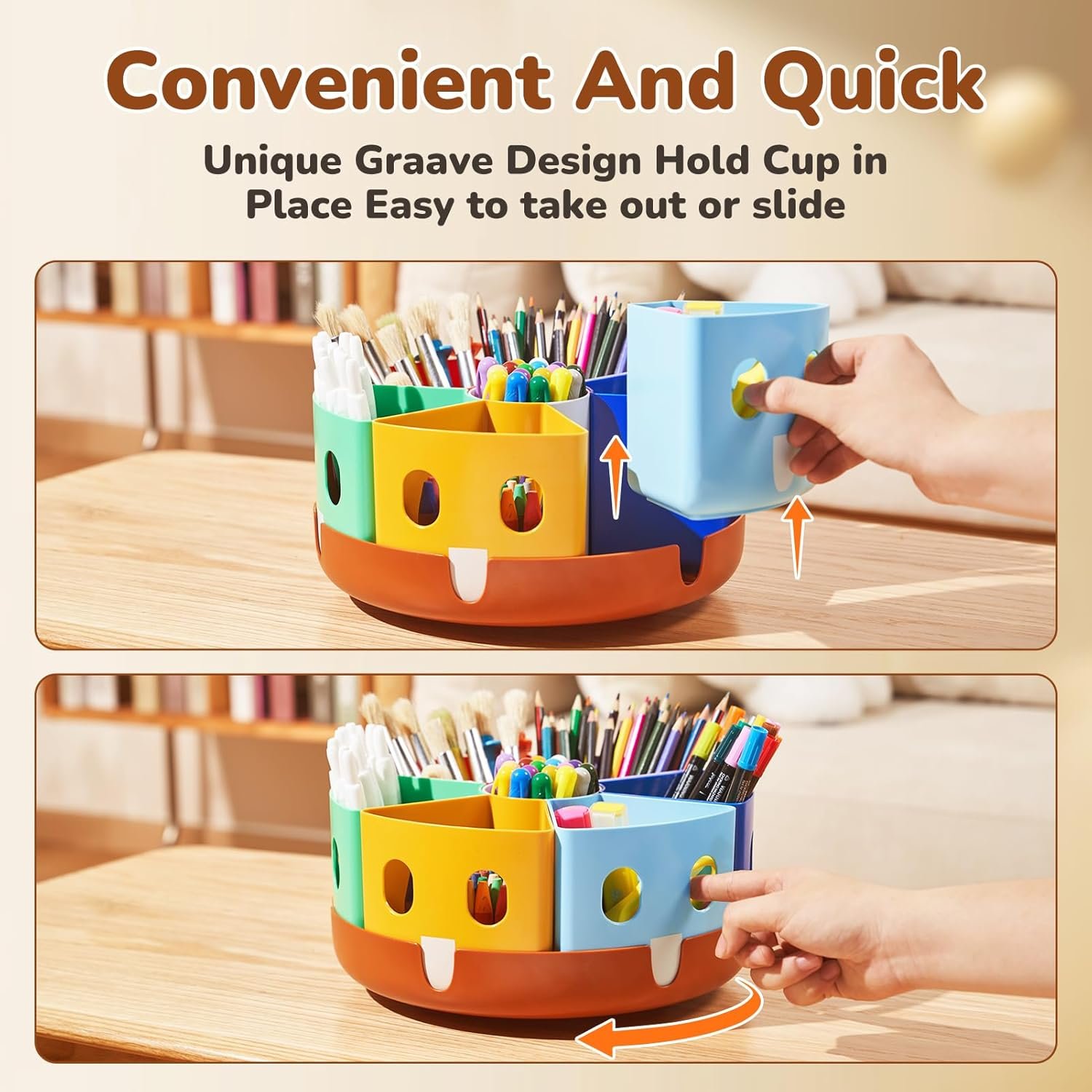 360°Spin Base: Simply spin this caddy organizer to store or take out your stuff. Perfect for keeping your classroom, art center, office or playroom clutter-free