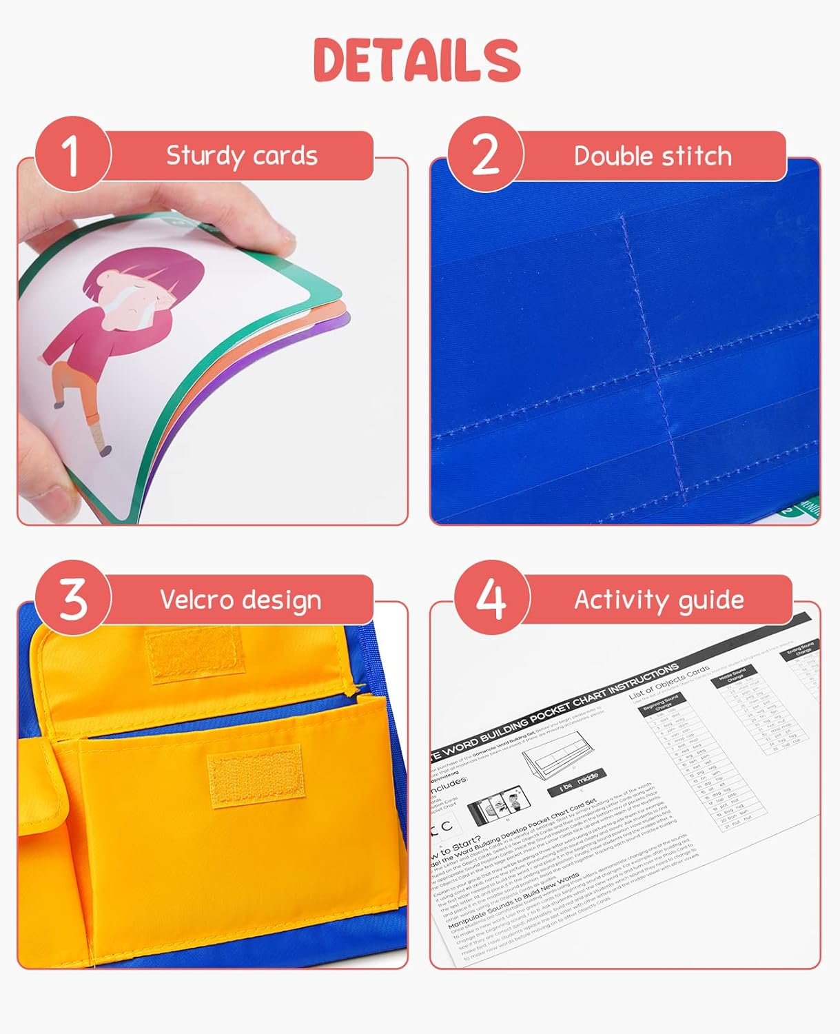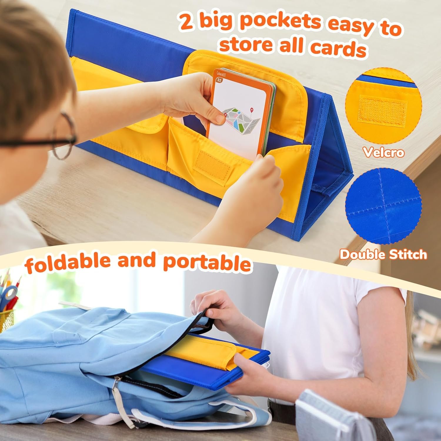 Fold-up Tent and Easy Storage:Students can easily slip the cards into the four clear pockets of the tabletop chart. The foldable chart can be easily assembles into a tent with velcro to hold it in position and 2 roomly pockets on the back for collecting all cards