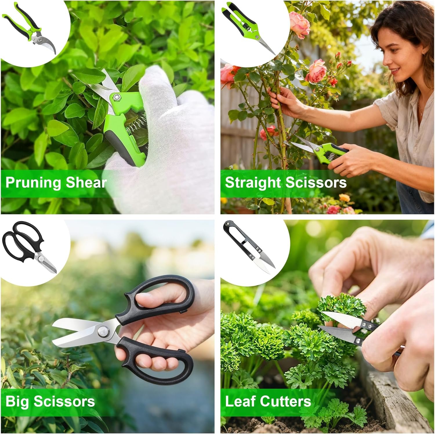 High quality and durable material: The scissors are made of 307 stainless steel, which is rust proof, sturdy, easy to clean, and convenient to use. Suitable for trimming stems, branches, and slender roots, scissors of different sizes are suitable for trimming or shaping bonsai, making them a good helper for you in your garden