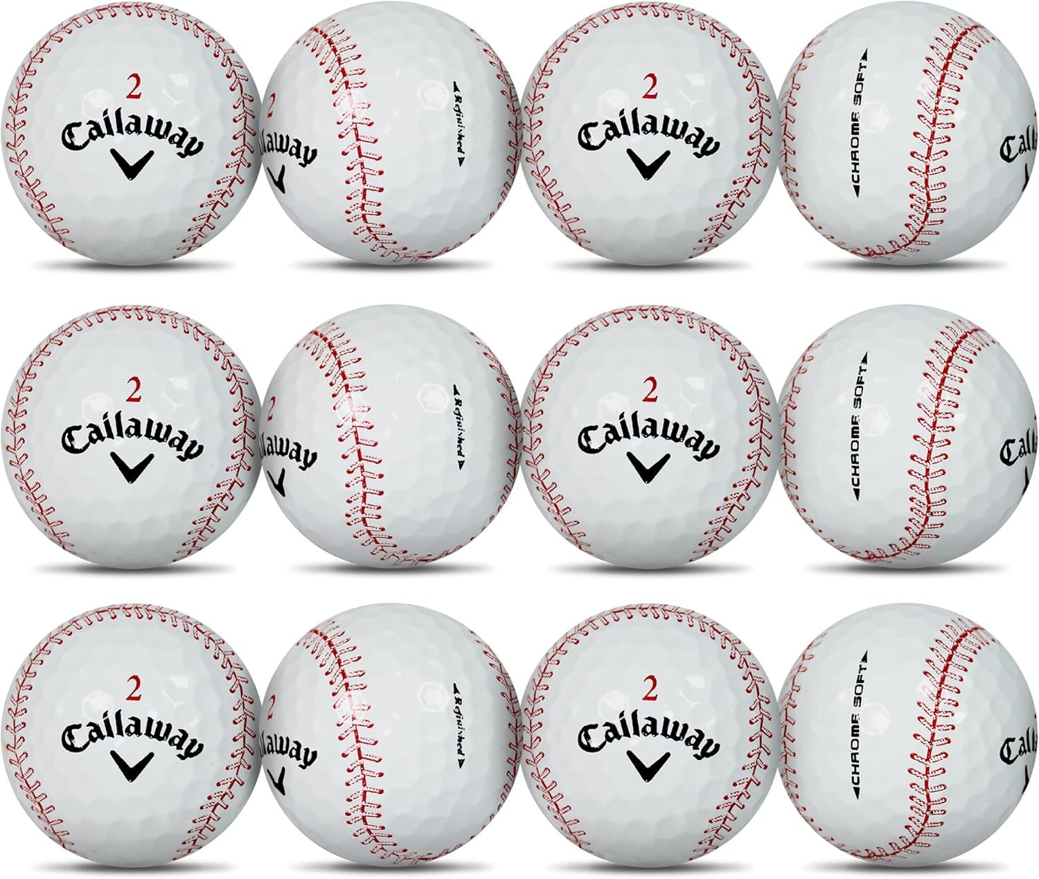360° BASEBALL IMPRINT – Callaway Chrome Soft Certified Refinished golf balls feature a baseball stitching pattern, blending golf and baseball aesthetics. Enjoy a design that adds a sporty twist to your game.