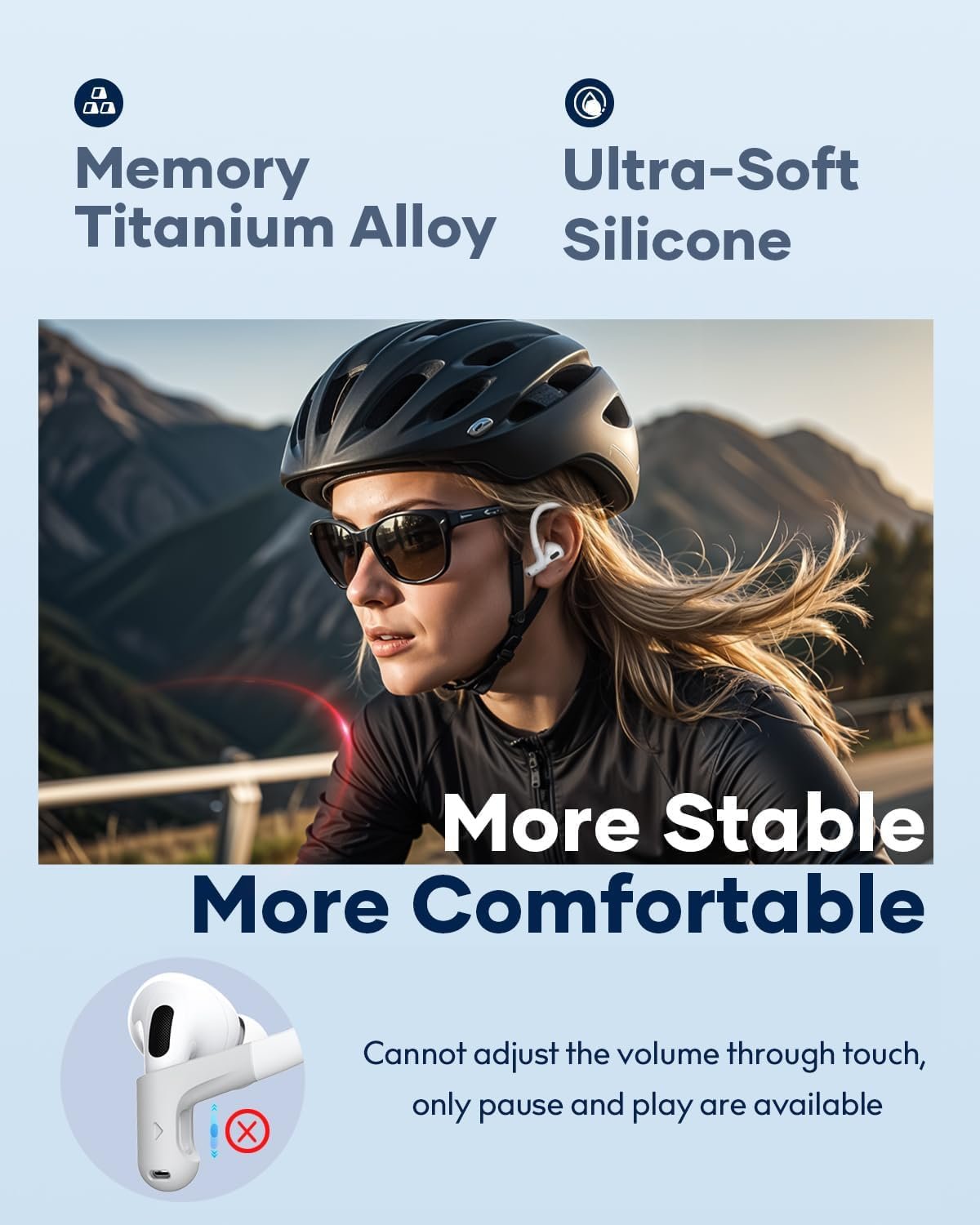 Exceptional Durability – Crafted with extra tempered silicone and Memory Titanium Alloy, our Ear Hooks retain their shape and flexibility for rigorous workouts. They offer both durability and stability, keeping your AirPods securely in your ears without compromising comfort.