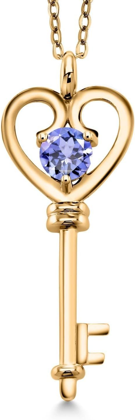 Gem Stone King 18K Yellow Gold Plated Silver Heart Key Pendant Necklace For Women | Round 5MM | Gemstone Birthstone | Mom Wife Birthday Anniversary Graduation Gifts | With 18 Inch Silver Chain