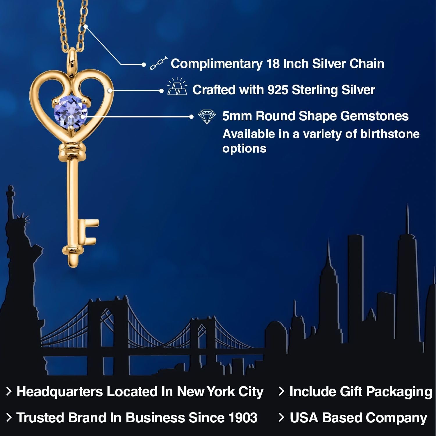 Be the first to review “Gem Stone King 18K Yellow Gold Plated Silver Heart Key Pendant Necklace For Women | Round 5MM | Gemstone Birthstone | Mom Wife Birthday Anniversary Graduation Gifts | With 18 Inch Silver Chain” Cancel reply
