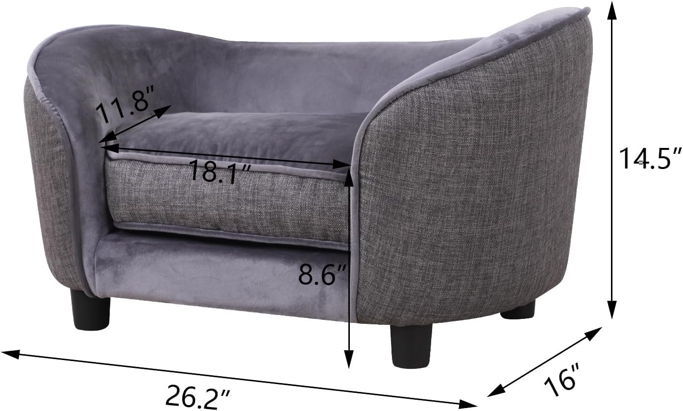Please make sure this pet sofa fits your pet cats or small dogs before you buy. Pet sofa size is 26.2*16*14.5 inches.