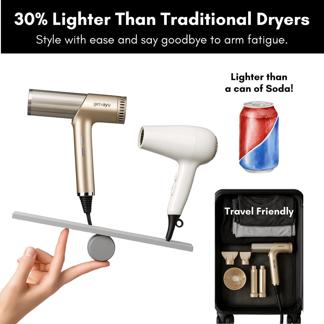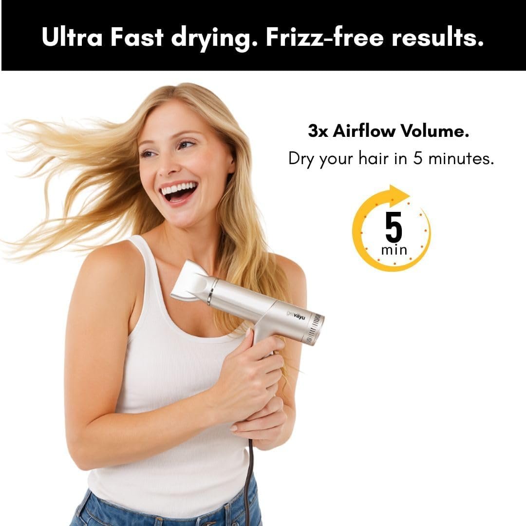 Premium Dupe with Smart Heat-Control Technology getvayu delivers premium performance – intelligent heat control prevents extreme temperatures and protects shine. Enjoy a powerful yet quiet blow dryer built to outlast ordinary dryers, backed by getvayu Hypersonic innovation.