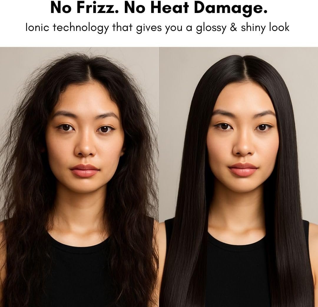 Ionic & Negative Ion Technology for Frizz-Free Shine Advanced ionic + negative ion technology releases millions of ions to lock in moisture and reduce static. Perfect for curly, wavy, or straight hair, this frizz-control blow dryer ensures silky, glossy results with no heat damage.
