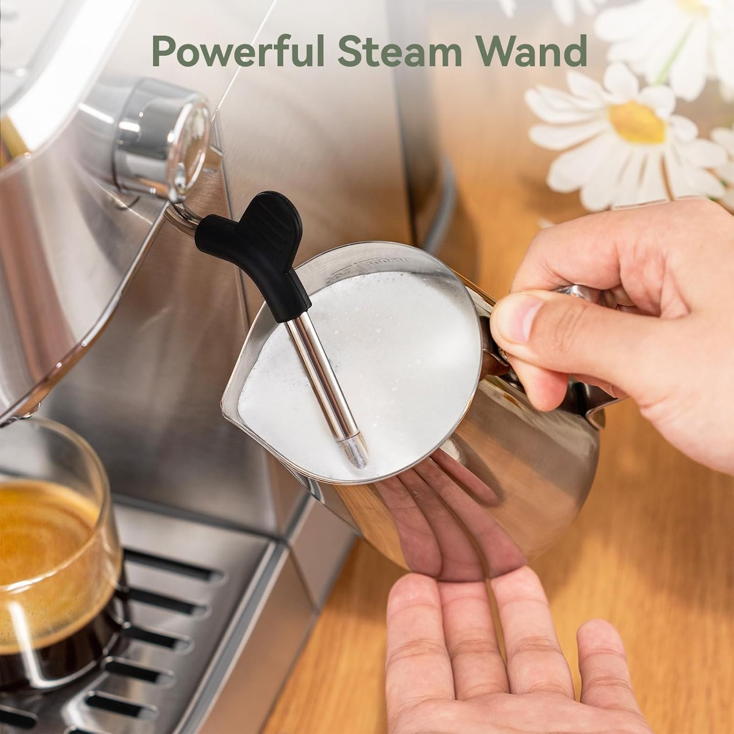 𝐏𝐨𝐰𝐞𝐫𝐟𝐮𝐥 𝐒𝐭𝐞𝐚𝐦 𝐒𝐲𝐬𝐭𝐞𝐦 – The espresso coffee maker with frother features a powerful steam wand that quickly turns milk into silky smooth microfoam. The removable froth nozzle makes the cleaning easily.
