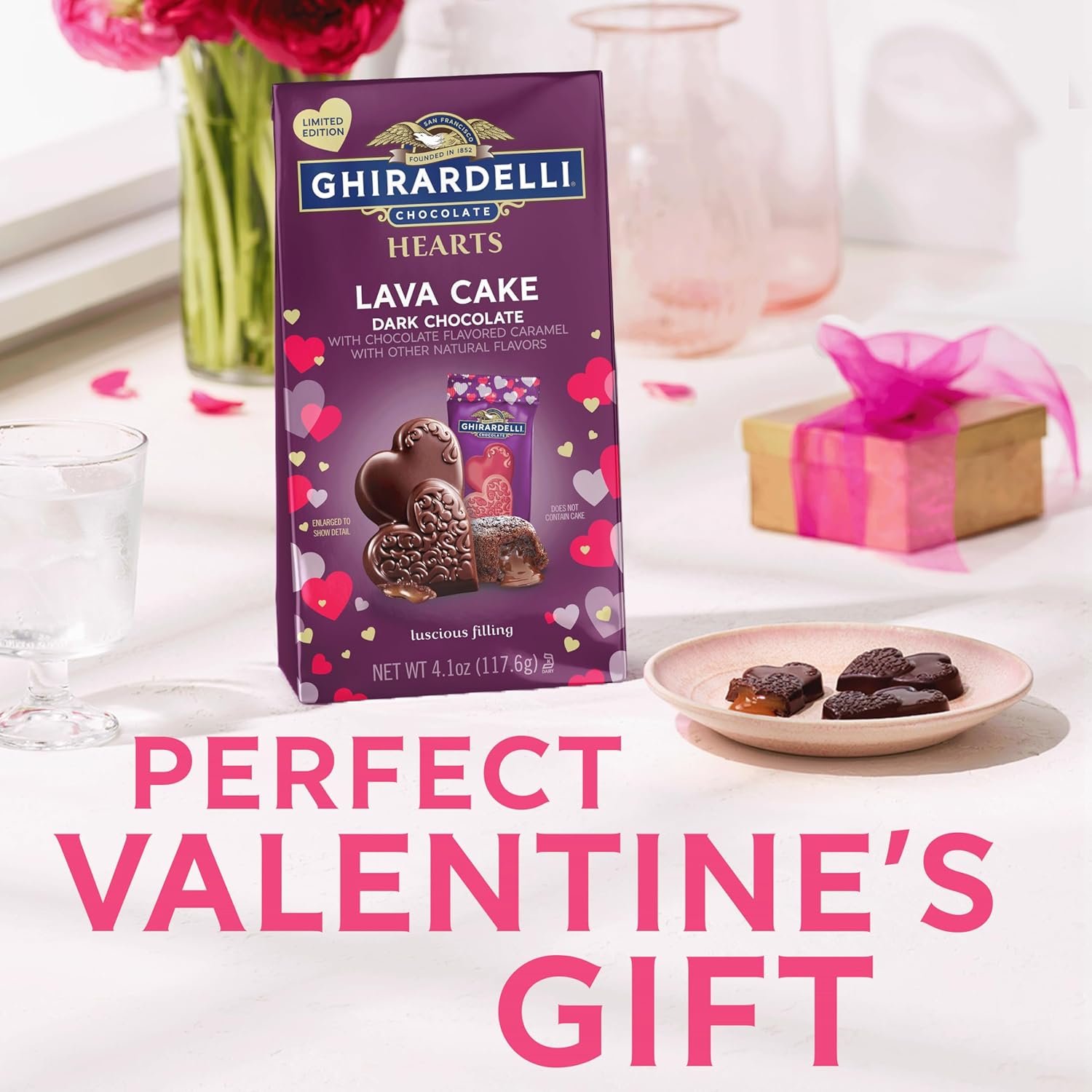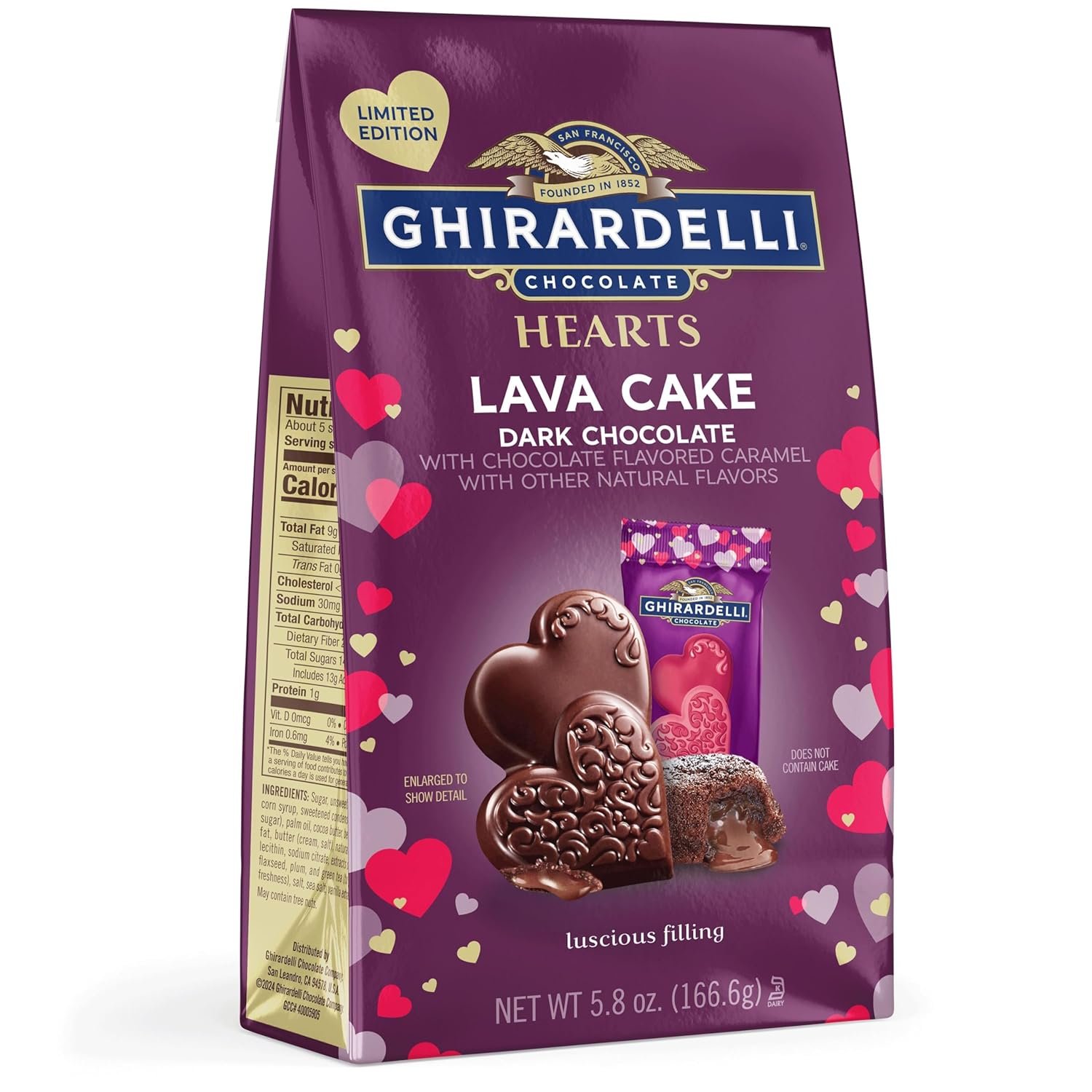 One (1) 5.8 oz bag of GHIRARDELLI Lava Cake Dark Chocolate Hearts