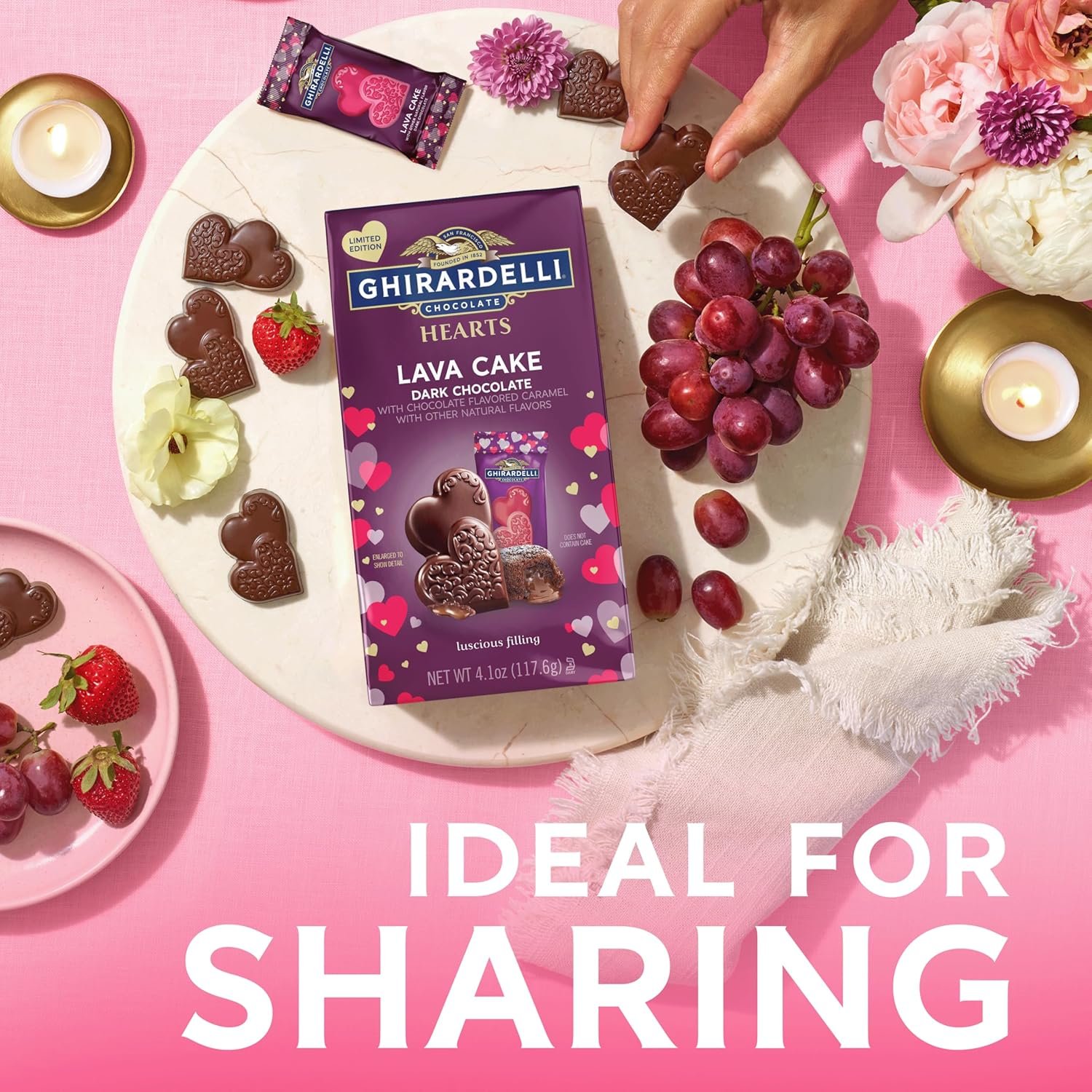 Indulge in dessert-inspired decadence with GHIRARDELLI Lava Cake Dark Chocolate Hearts. Each heart features a rich dark chocolate flavored caramel filling reminiscent of warm lava cake. Perfect for Valentine’s Day gifting, sharing, or savoring solo, these premium chocolates deliver deep cocoa flavor and luxurious texture in every bite.