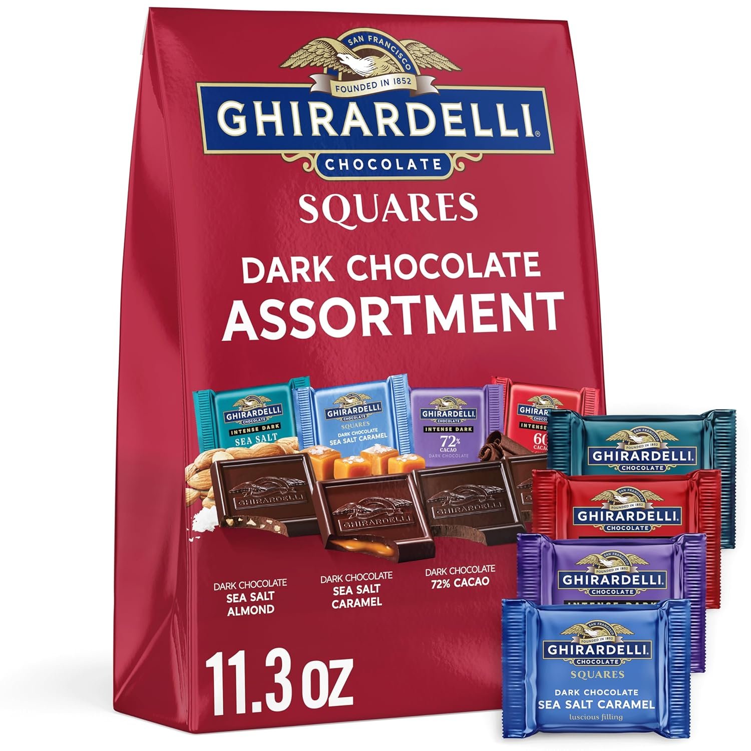 One (1) 11.3 oz bag of GHIRARDELLI Dark Chocolate SQUARES Assortment – rich, slow-melting dark chocolate in indulgent flavors