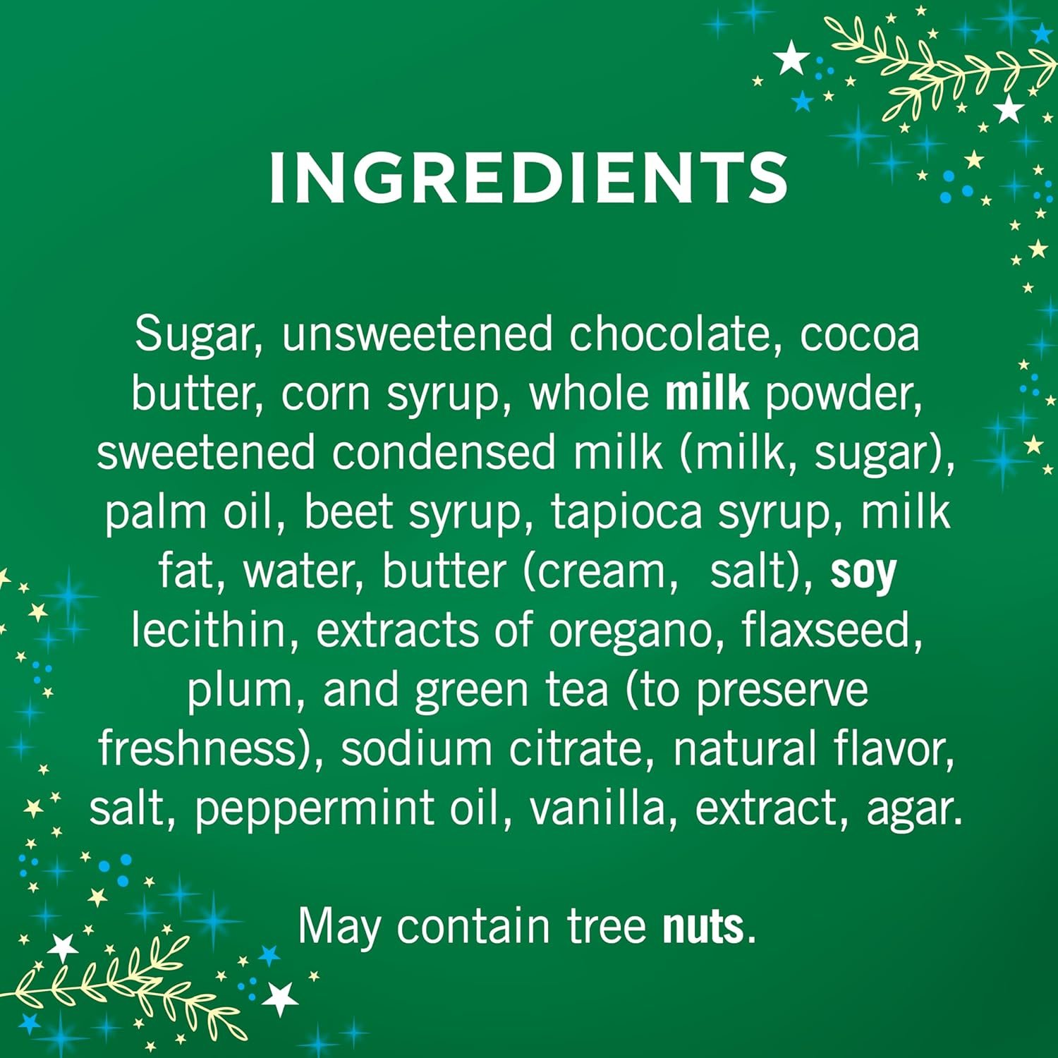 Includes three festive favorites: Milk Chocolate Caramel, Dark Chocolate Mint, and 60% Cacao Dark Chocolate