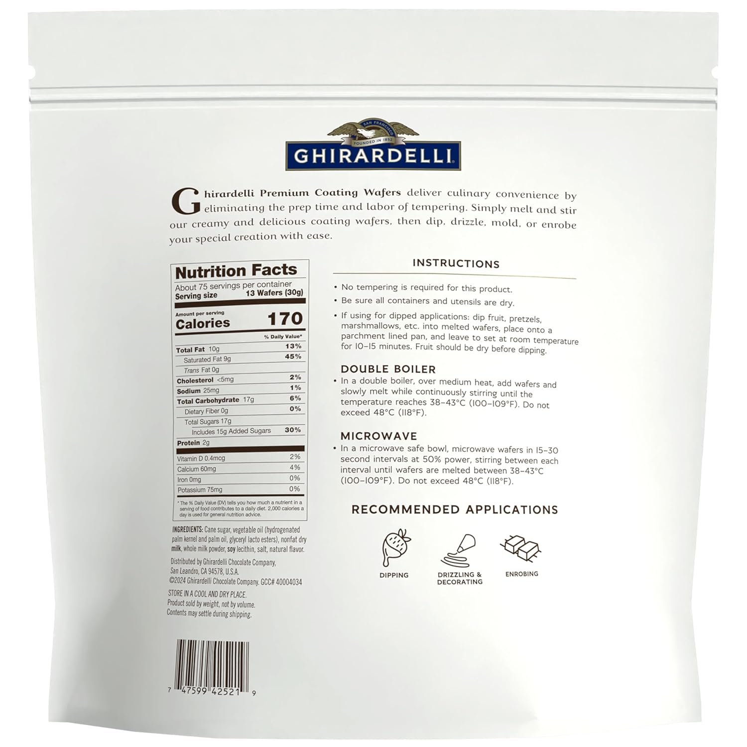 Simplify dessert production with Ghirardelli Premium Coating Wafers – now available in convenient resealable 5lb bags. Consistent, efficient, and versatile, these compound wafers melt smoothly for easy dipping, drizzling, or enrobing – no tempering. Try both Dark and White Coating Wafers: simply delicious, simply done.