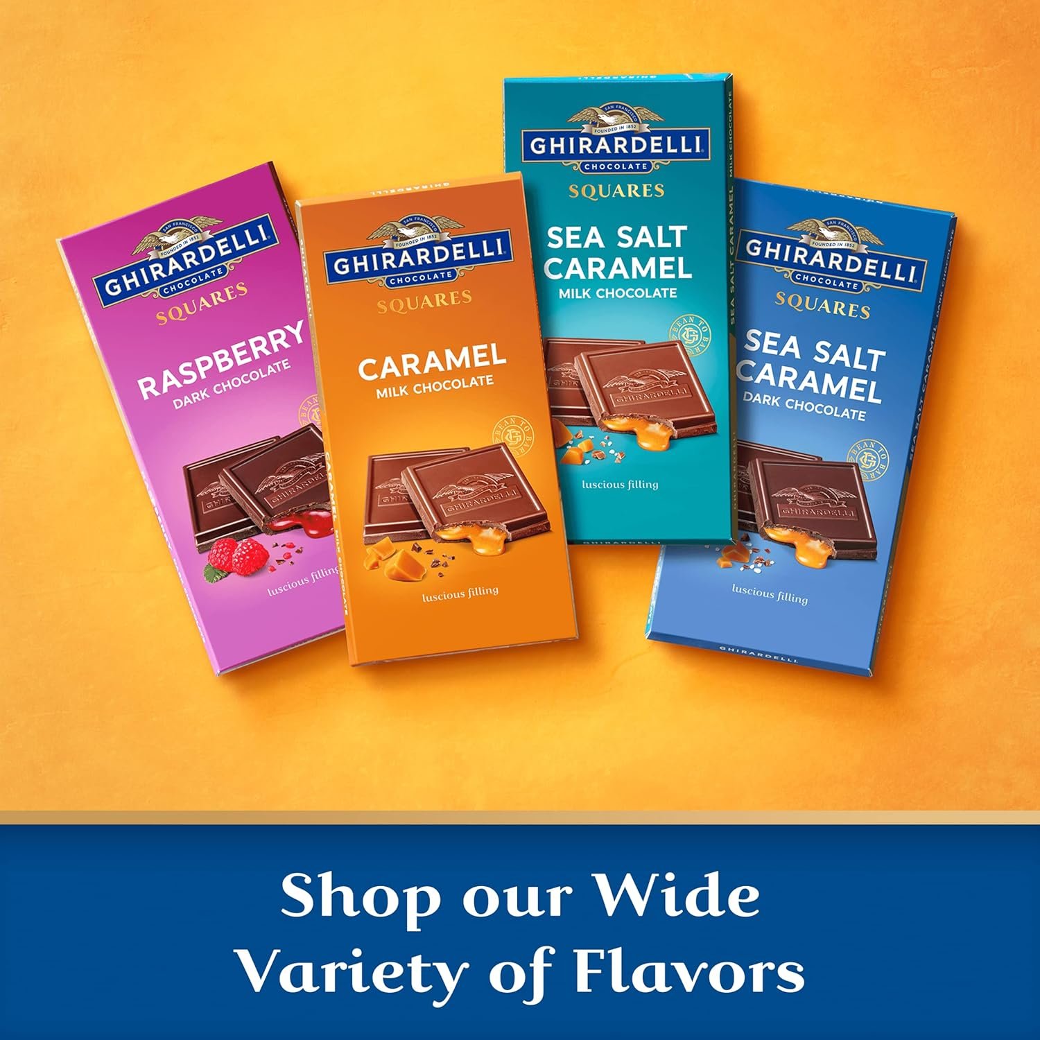 Experience luscious indulgence with each bite of this GHIRARDELLI Dark Chocolate Bar with Sea Salt Caramel Filling. Perfectly balanced for a luxurious treat anytime, this dark chocolate candy bar adds a sweet touch to your day on its own and adds a sweet twist to s’mores and other desserts for something special. Share the sweet moments of joy and delight with someone special when you give this chocolate caramel bar as a gift. Luscious caramel with a touch of sea salt fills the slow-melting dark chocolate for pure bliss in every square. Each bar comes in squares to break apart easily for the perfect bite. Premium ingredients, including high quality cocoa beans, are part of the GHIRARDELLI difference: a commitment to ultimate quality from Bean to Bar. GHIRARDELLI Makes Life a Bite Better.