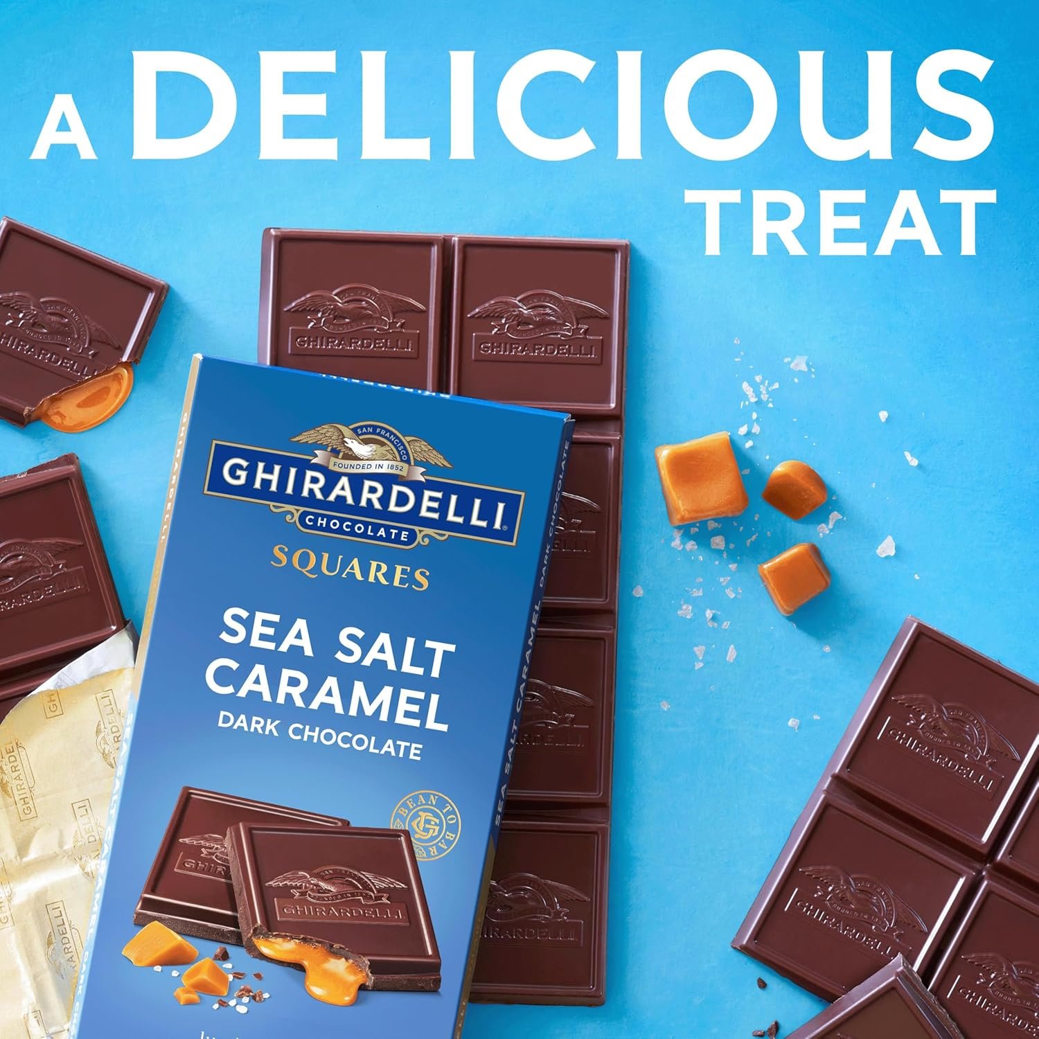 GHIRARDELLI Sea Salt Caramel Dark Chocolate Squares Bar, 4.8 Oz Bar