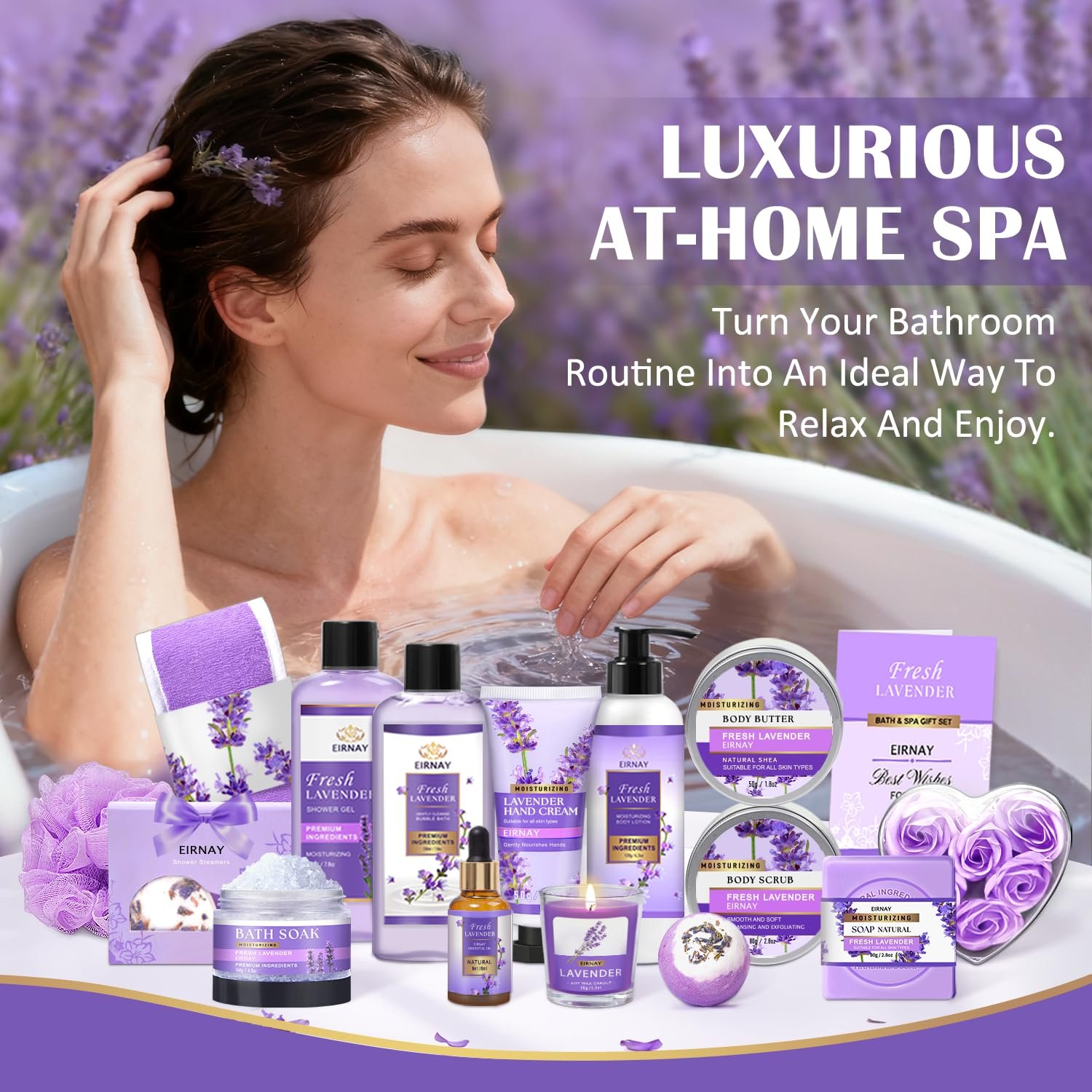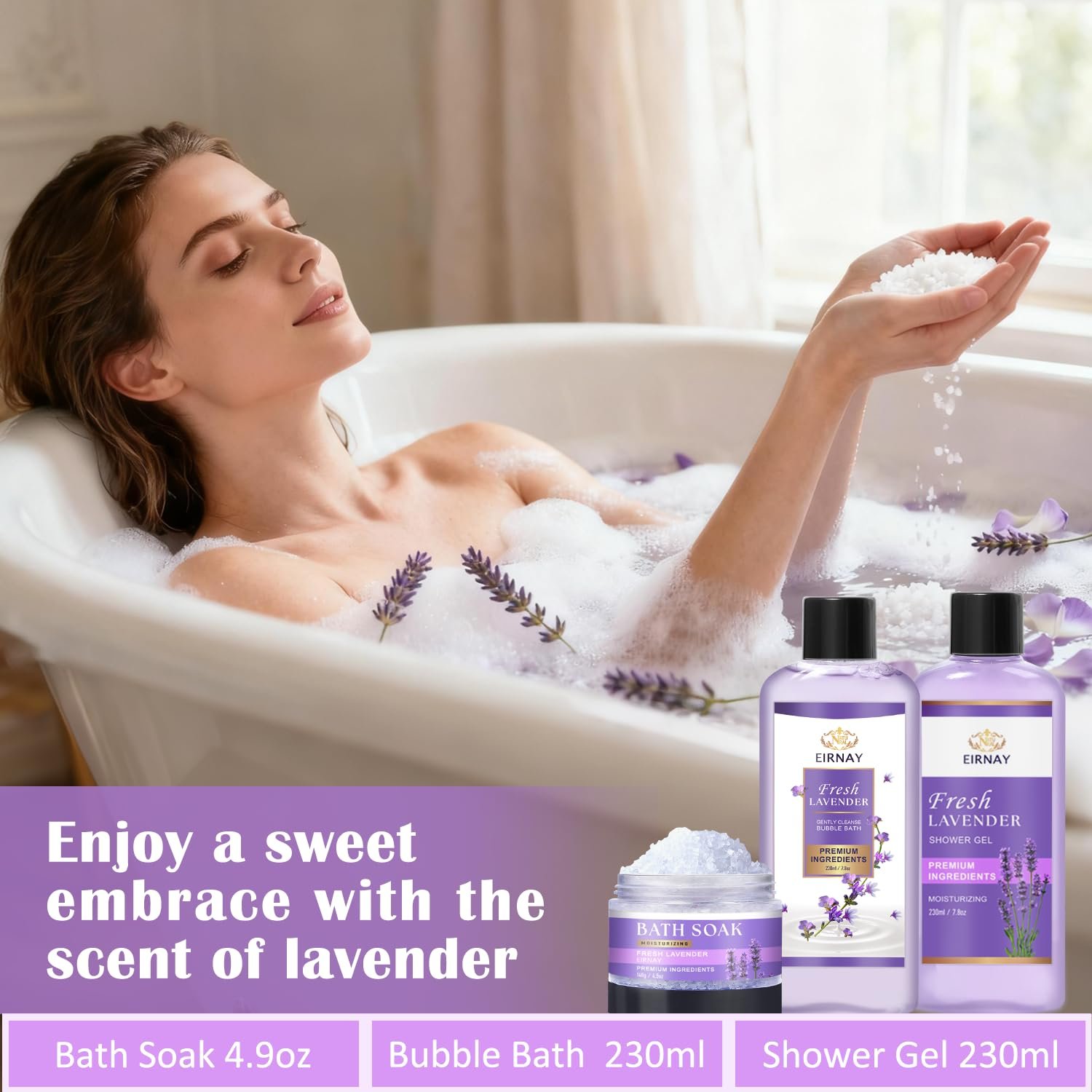 BATH GIFT BASKET SET FOR WOMEN: Who can resist the tempting scent of lavender, the sweet fragrance provides aromatherapy, the gentle lavender scent brings a cozy bathing experience, letting your senses be surrounded by its charming embrace.