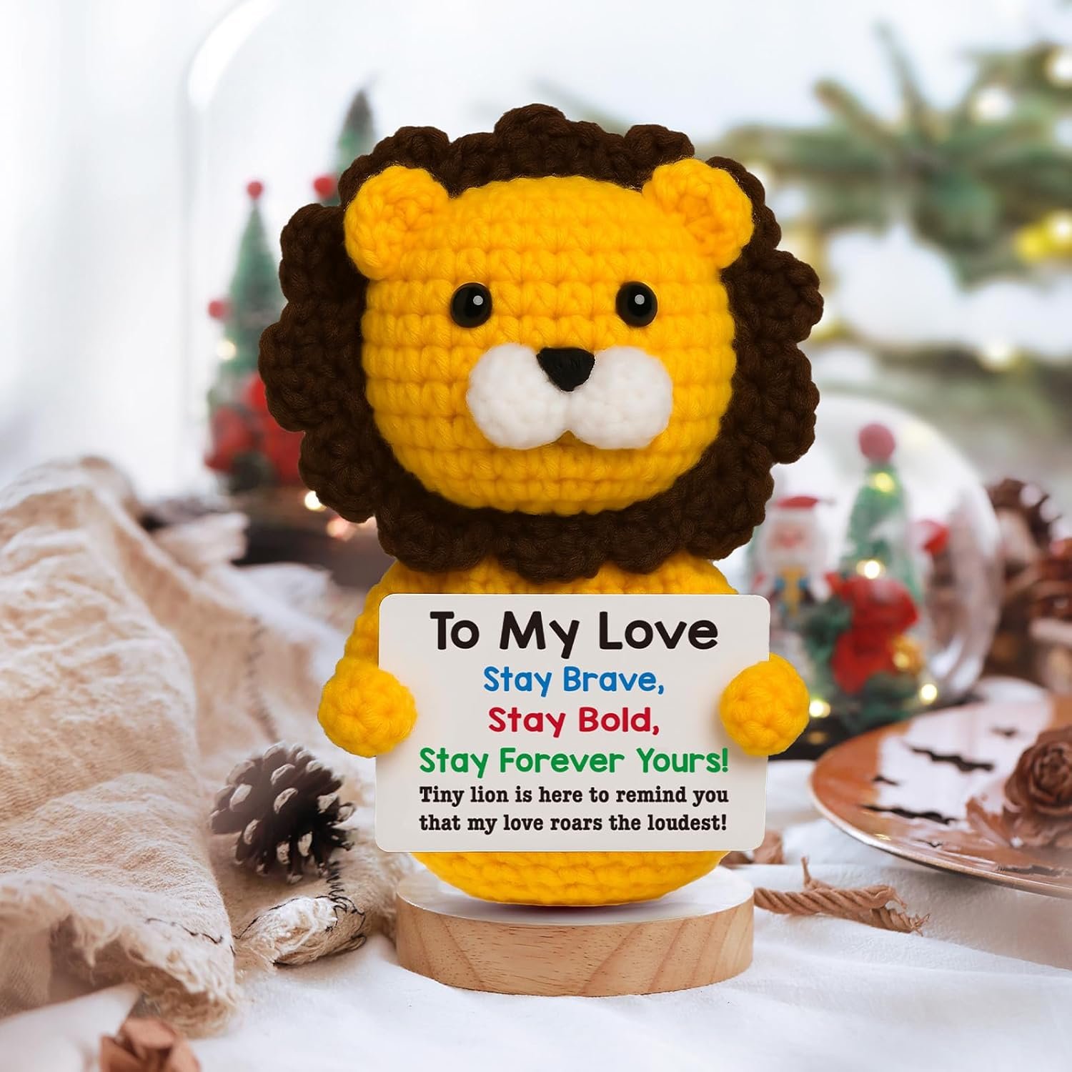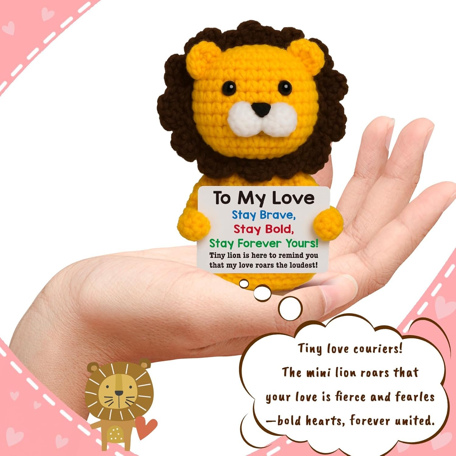 A ROAR OF LOVE FOR YOUR PARTNER: Declare your deepest feelings with this adorable crochet lion and its heartfelt message card: “To My Love, Stay Brave, Stay Bold, Stay Forever Yours! Tiny lion is here to remind you that my love roars the loudest!”