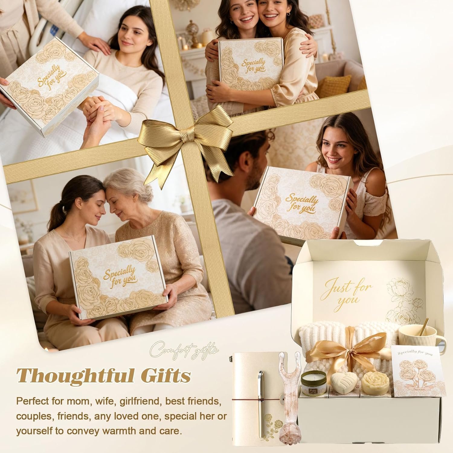 CHAMPAGNE-COLORED ROSE MOTHERS DAY GIFT BOX SET FOR WOMEN SPECIALLY FOR YOU: Our gift set for women does not mention any event in particular, appropriate for anyone any occasion – whether it’s to say happy Mothers Day, happy birthday, thank you, cheer up, get well soon, or simply you deserve some love. A perfect gift box for her at any age group, and making it suit at Birthday, Valentines Day, Mothers Day, Christmas, Thanksgiving, Anniversary, Graduation, Holiday, etc.
