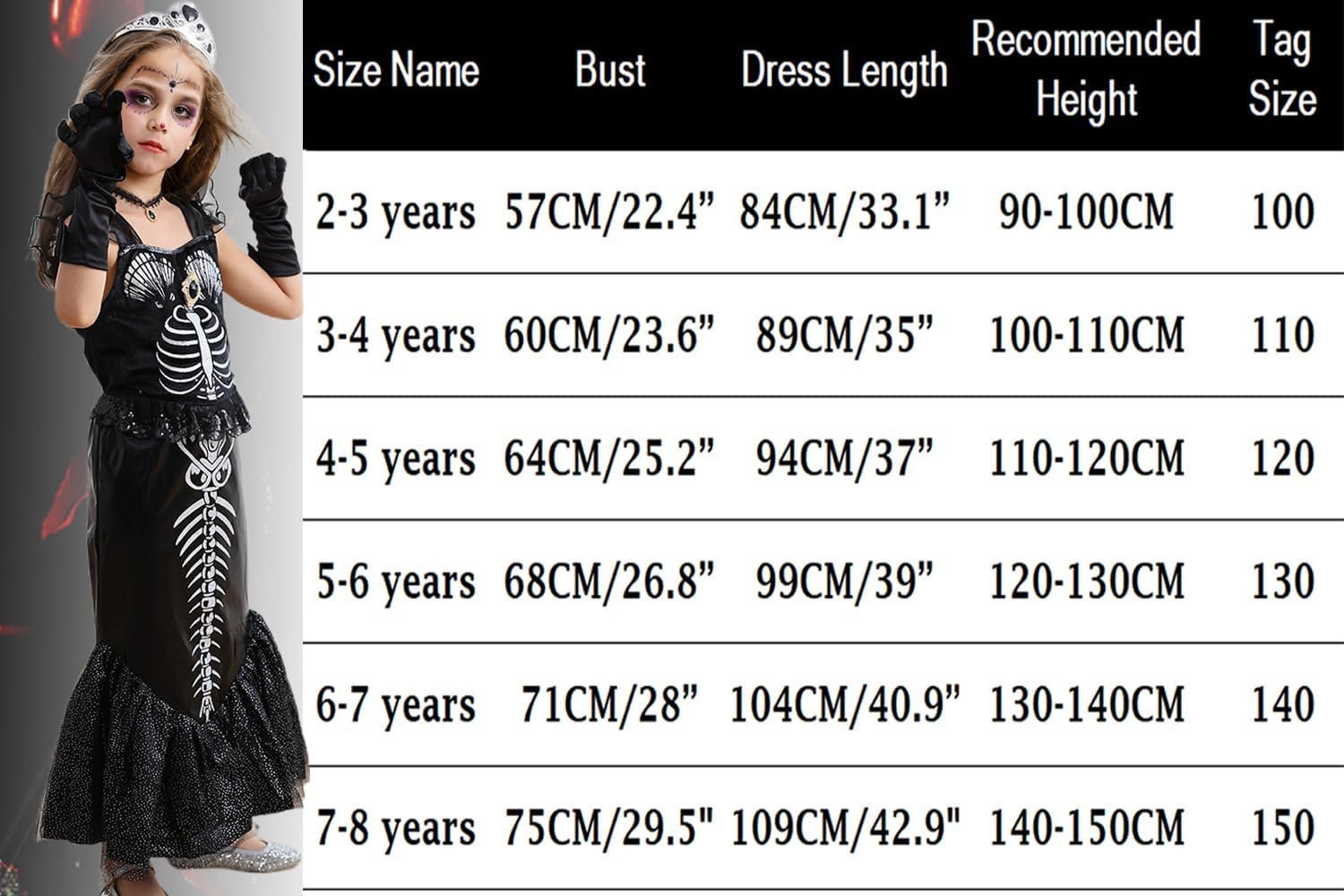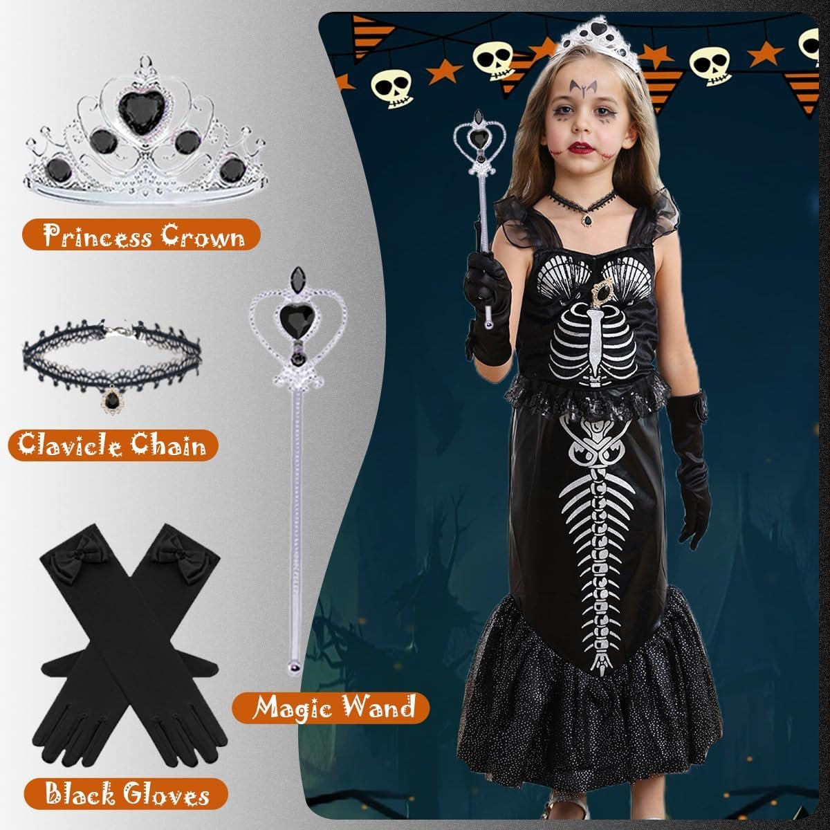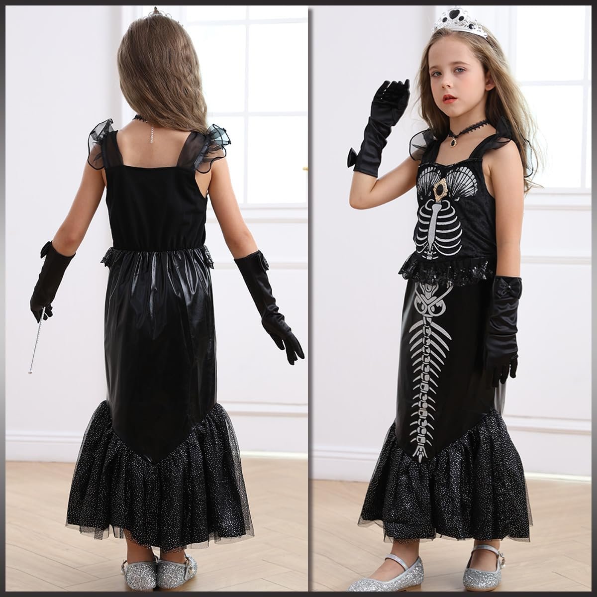 The Black Skeleton Print Mermaid Dress is very unique and will make your little girl the center of attention at a themed party.