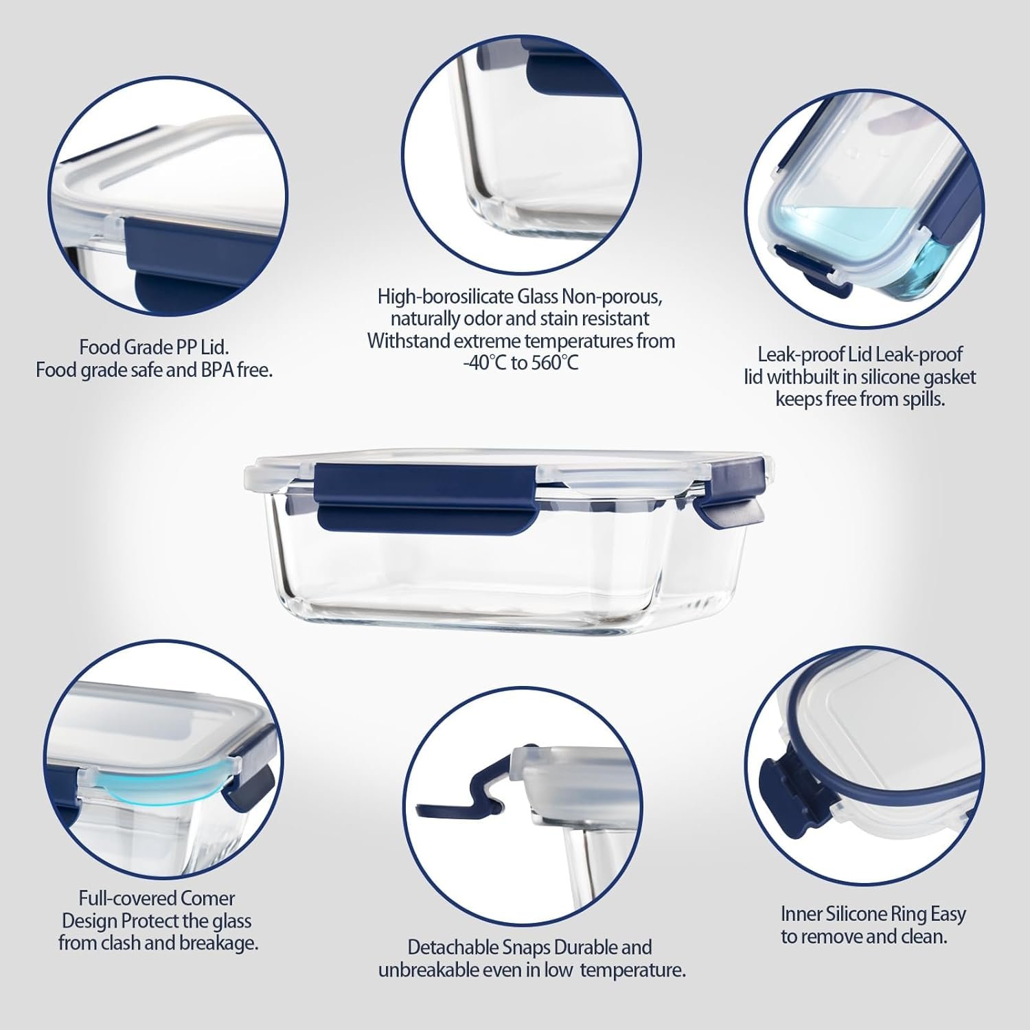 Bpa-free & Lead-free & High-borosilicate glass – The Glass Storage Containers are BPA Free, and made out of high-borosilicate glass for easy heating and durability. non-porous glass, Free of Harmful Chemicals.