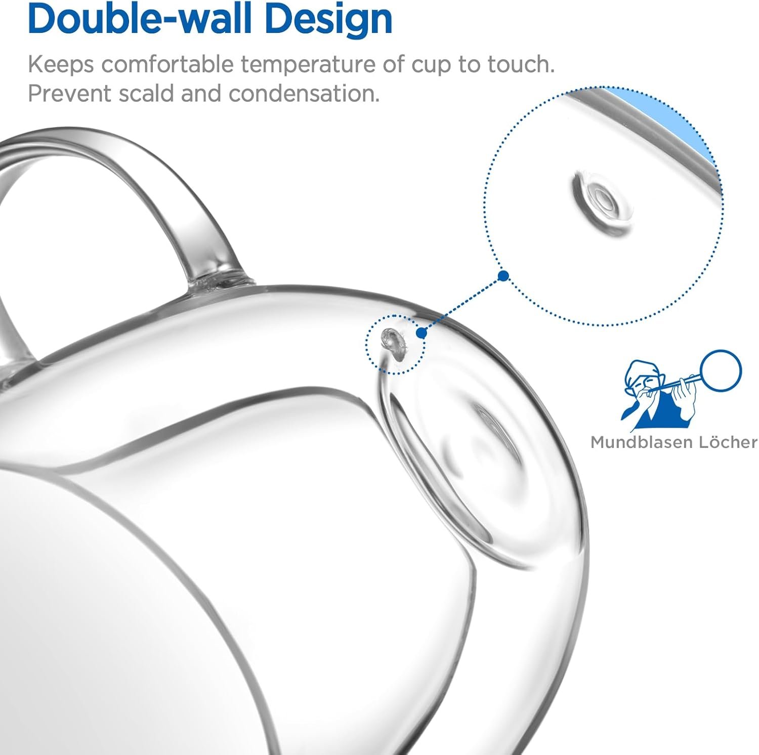 ✨Double-Layer Design: When the cup is filled with hot drinks, the outside of it is kept cool, and when it is filled with cold drinks, the outside is free from condensation. Under the same conditions, your drink will stay warm or cool longer than in a single-layered glass cup. IMPORTANT NOTE: Washing by hand is recommended for better maintenance.