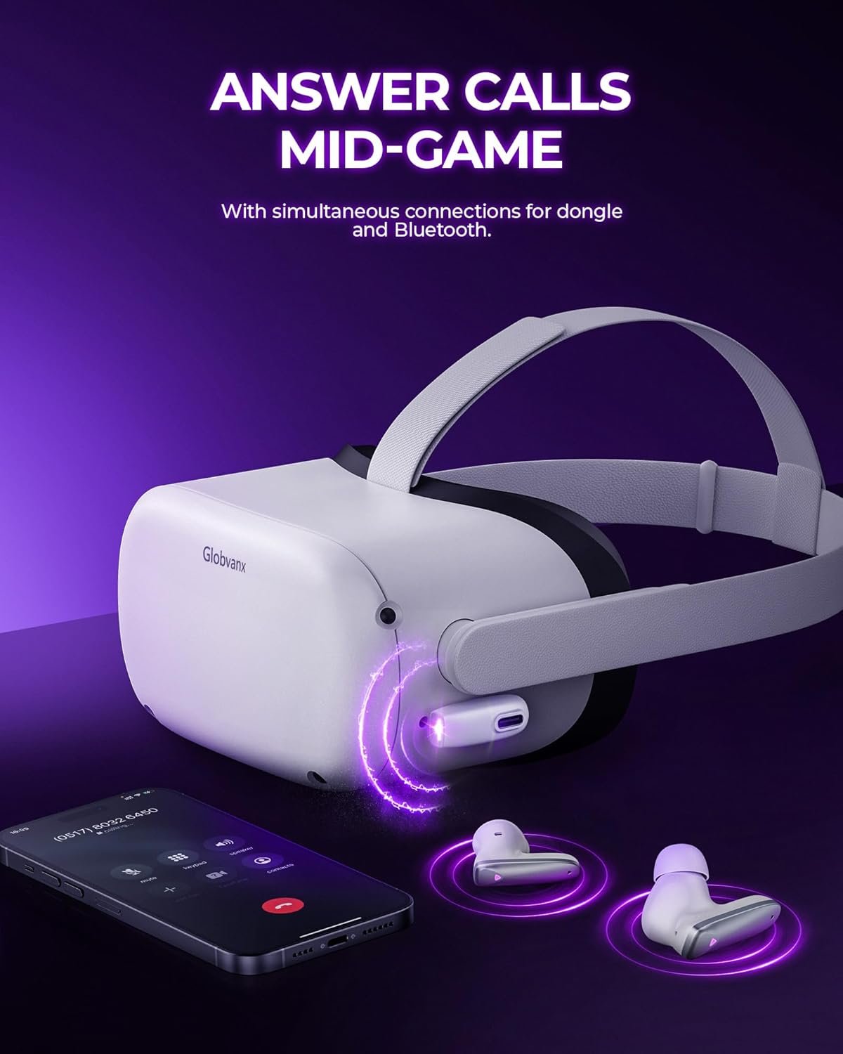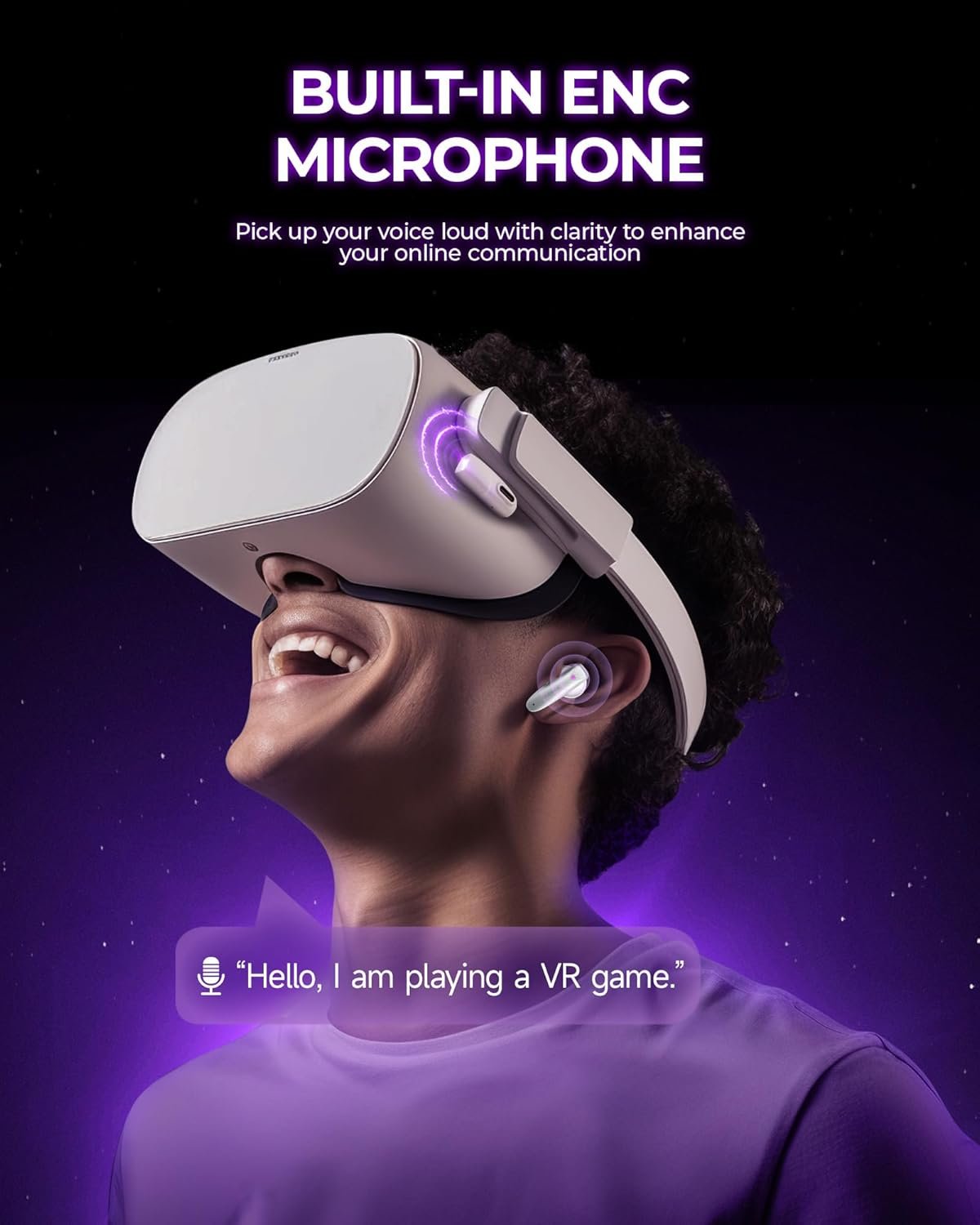 ✅ Ultra-Low Latency (<20ms) Gaming Audio: Globvanx V2 true wireless gaming earbuds deliver ultra-fast, lag-free audio — perfect for VR, Meta Quest 3S, Quest 3, Quest 2, PS5, PS4, PC, Switch, and more. Enjoy real-time audio-visual synchronization for a smoother, more immersive gameplay experience.