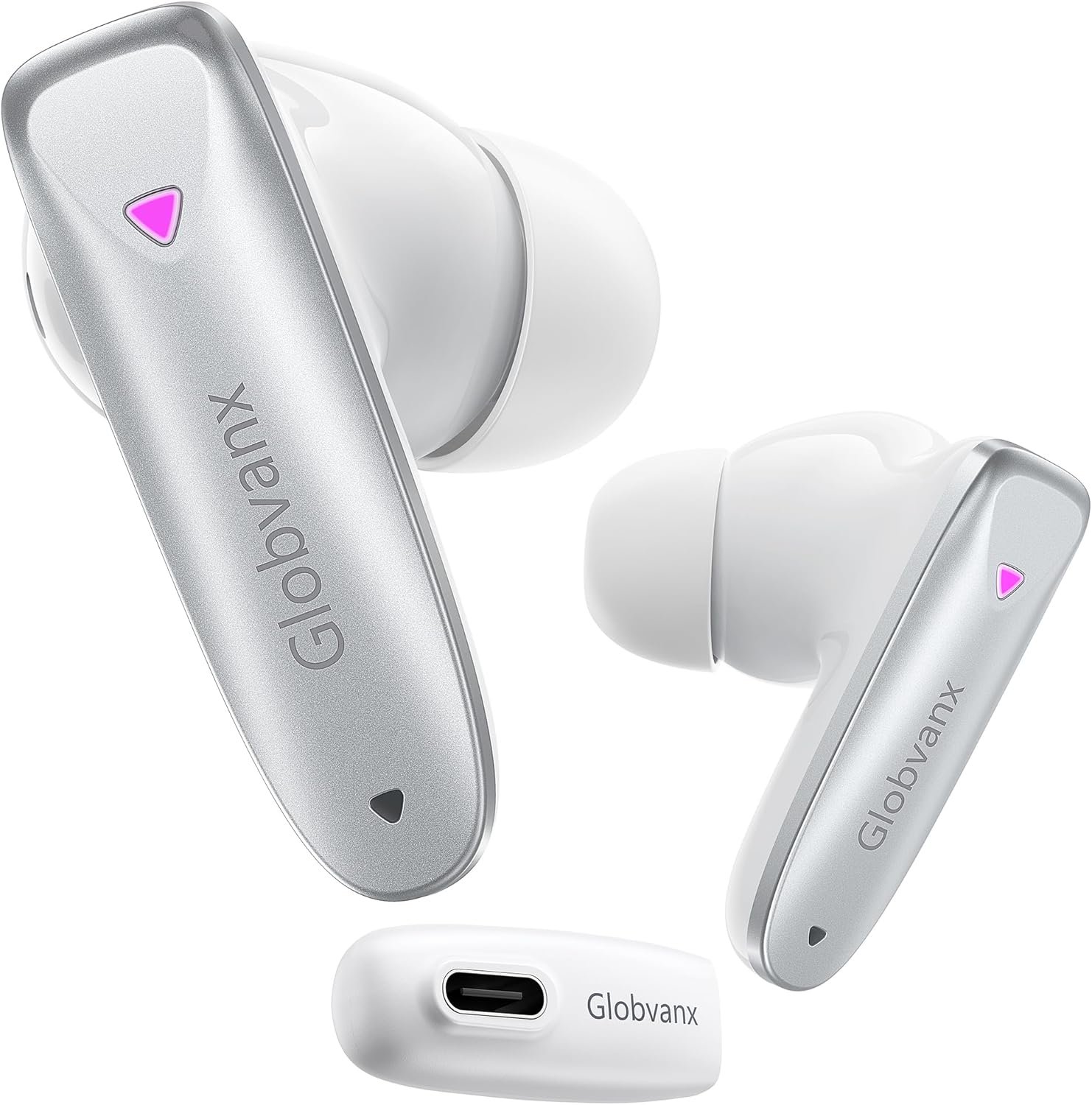 ✅ Ergonomic, IPX5 Water-Resistant Design: Globvanx V2 earbuds come with multiple sizes of soft silicone eartips to match different ear canals, ensuring a comfortable, secure fit — perfect for long sessions and physical activity. IPX5 water resistance lets you enjoy gaming or fitness without worrying about sweat or light rain.