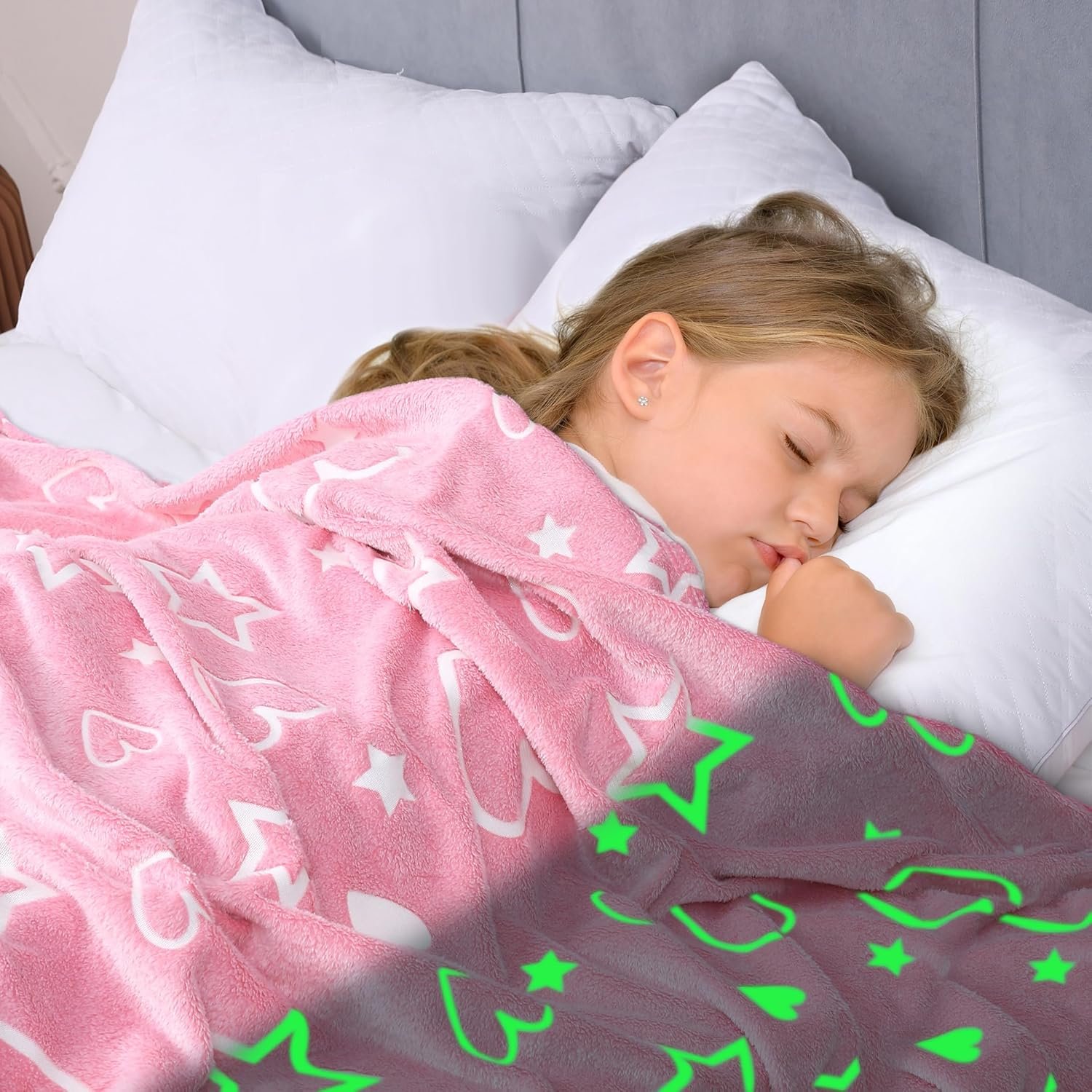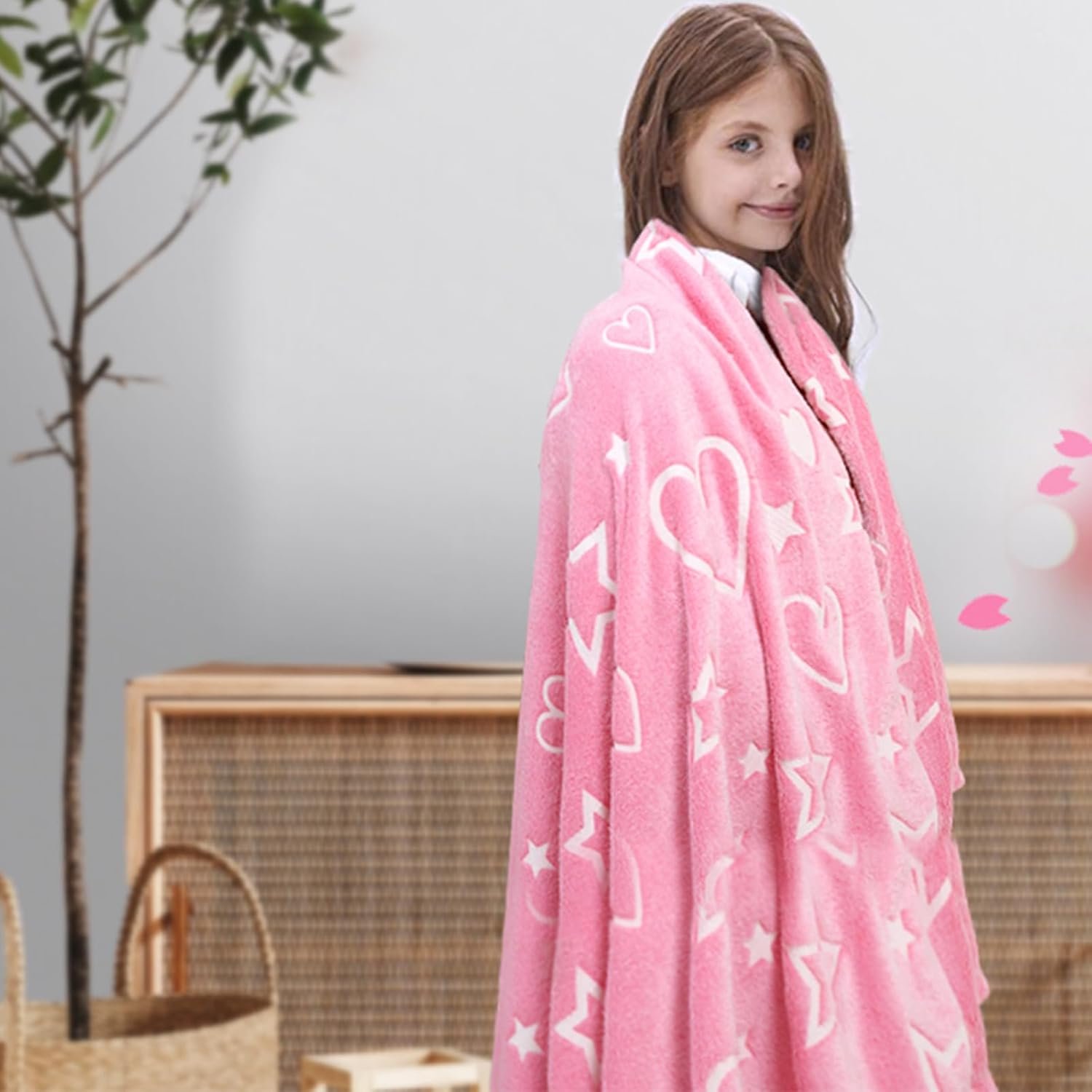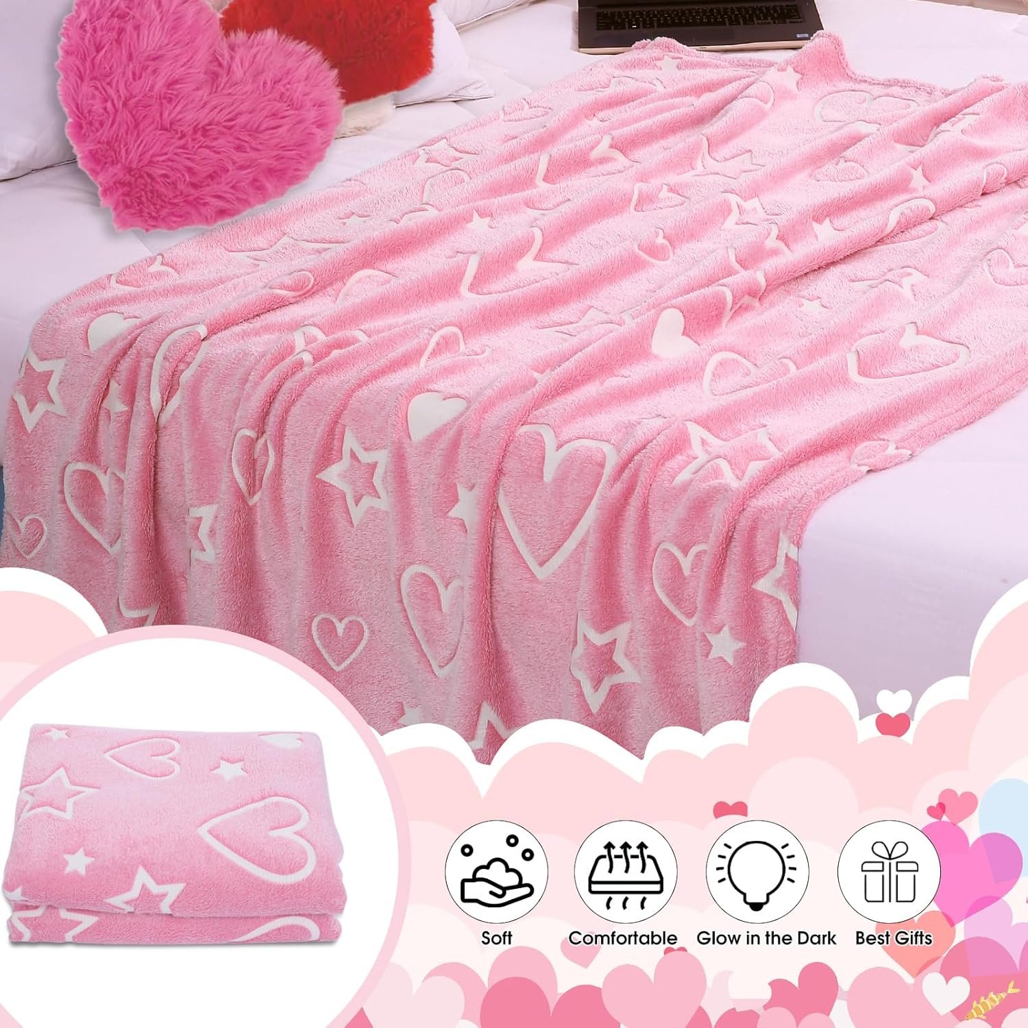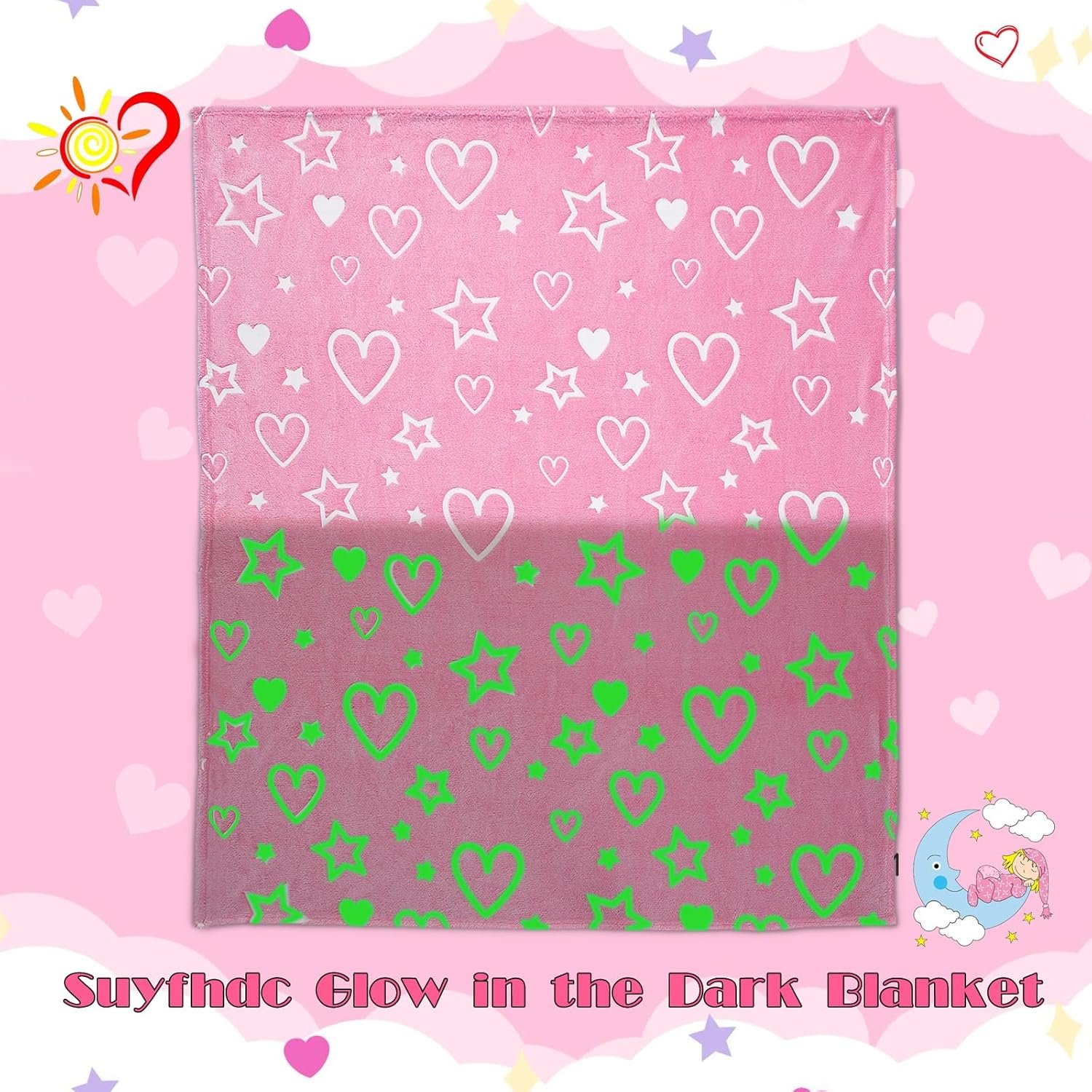 The Magic of Glowing:Suyfhdc heart blanket, a unique pink heart stars blanket, brings a dreamy pink atmosphere to the night. The fluffy breathable fabric glowing blanket suitable for boys and girls can not only bring warmth to mother, but also bring a lot of joy to a dull night. Just exposing the throw blanket for bed to bright light for 15 minutes can make it glow in the dark.
