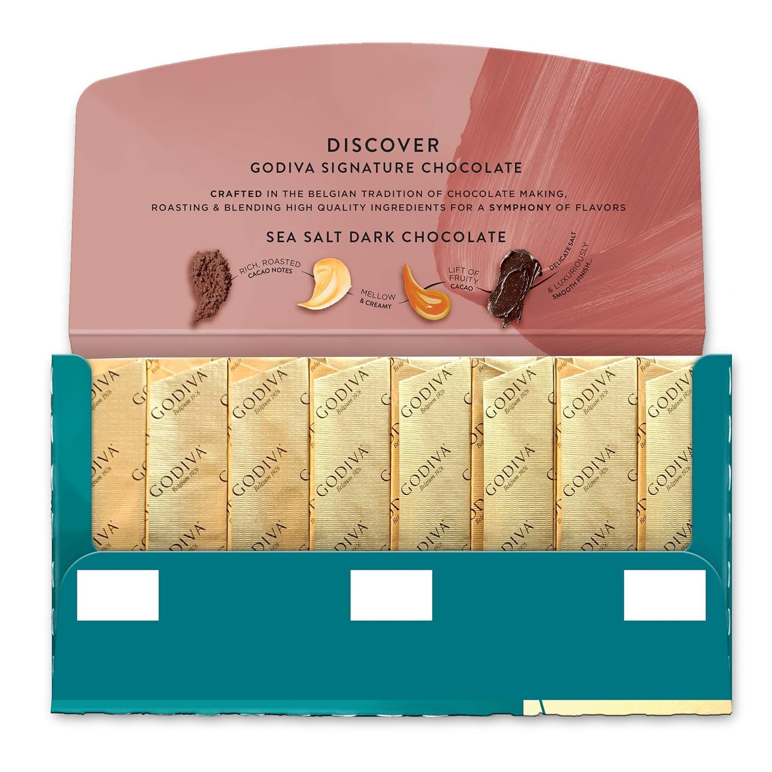 Dark chocolate devotees everywhere have a reason to rejoice. This Godiva gourmet chocolate set features a tantalizing collection of miniature chocolate bars carefully crafted using only the finest ingredients. Delicate sea salt crystals pair with gourmet dark chocolate to create a truly delectable treat you’ll want to taste again and again. All neatly contained with an elegant carton, complete with individually wrapped bars, this collection makes for a thoughtful gift or a satisfying treat the next time you find yourself in need of a quick chocolate indulgence.